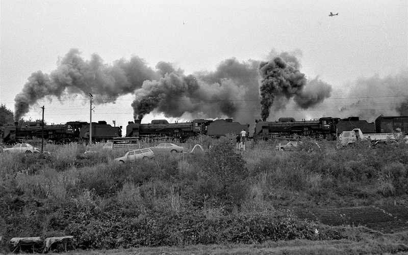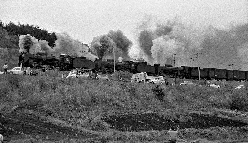 真ん中のD51がギースルのD51です。普通の煙突とギースルの煙突の排煙の様子が違います。よくわかります。比べることができる写真だと思います。車番を調べて見ると、D51457でした。このころの所属は秋田機関区になっています。当時の盛岡鉄道管理局所属ではなかったようです。