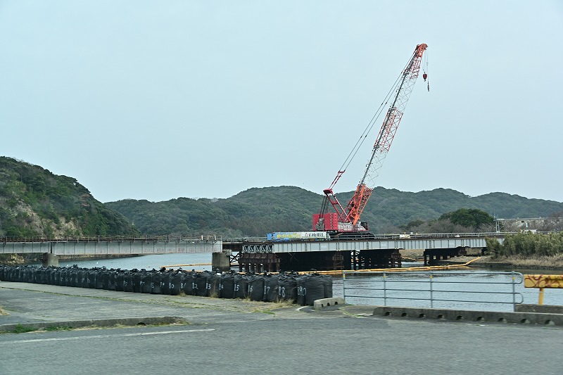 2023年の豪雨によって粟野川橋梁の橋桁が傾きました。その現場の側を通り、復旧工事が進んでいる様子を見ることが出来ました。今年中には完成する予定ですので、次回はこの橋を列車で通ろうと思います。