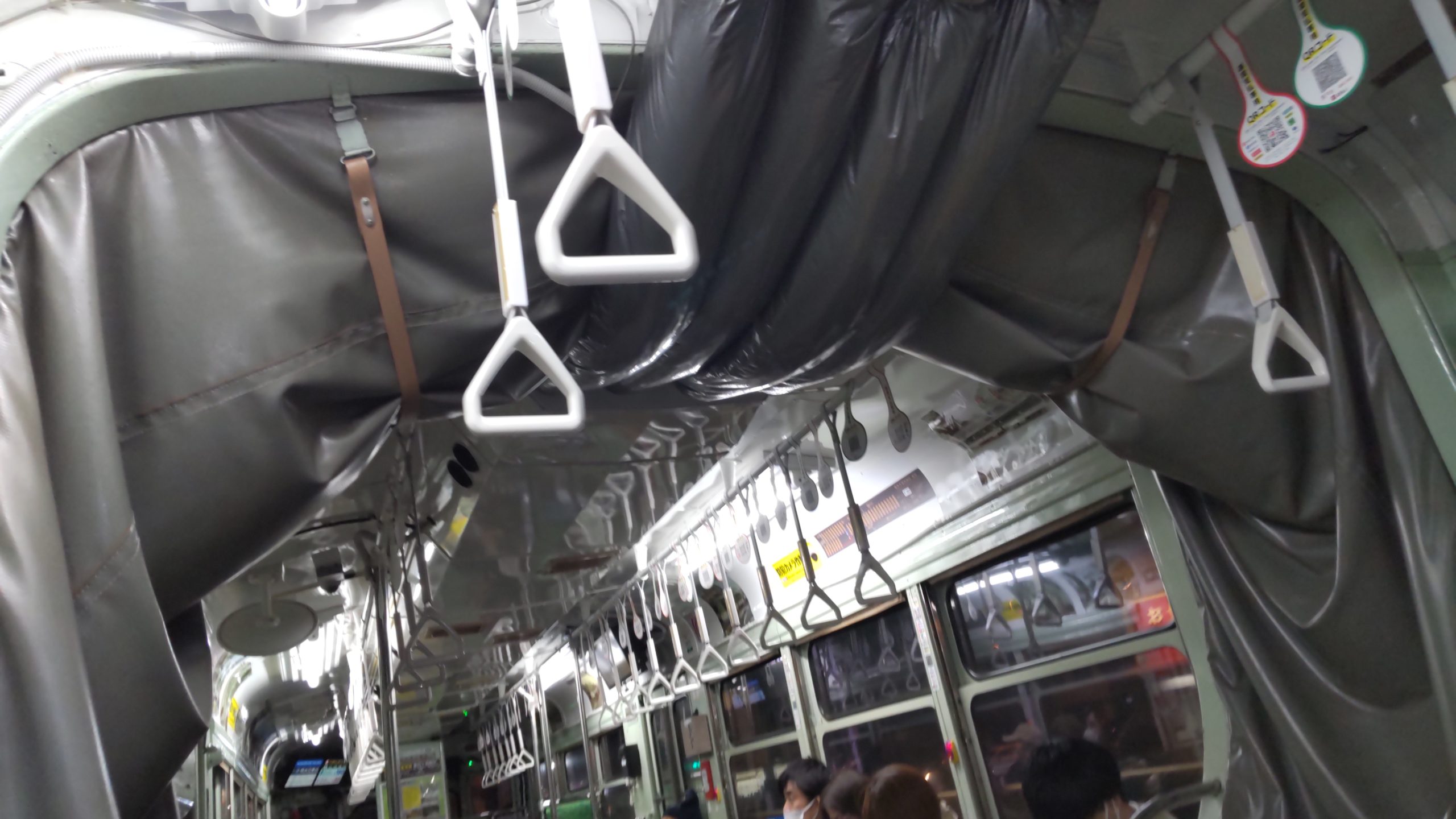 この頃、路面電車の平行カルダン車は5014と阪堺501型位ですね隣の車両に冷気を送る「ダクト」です