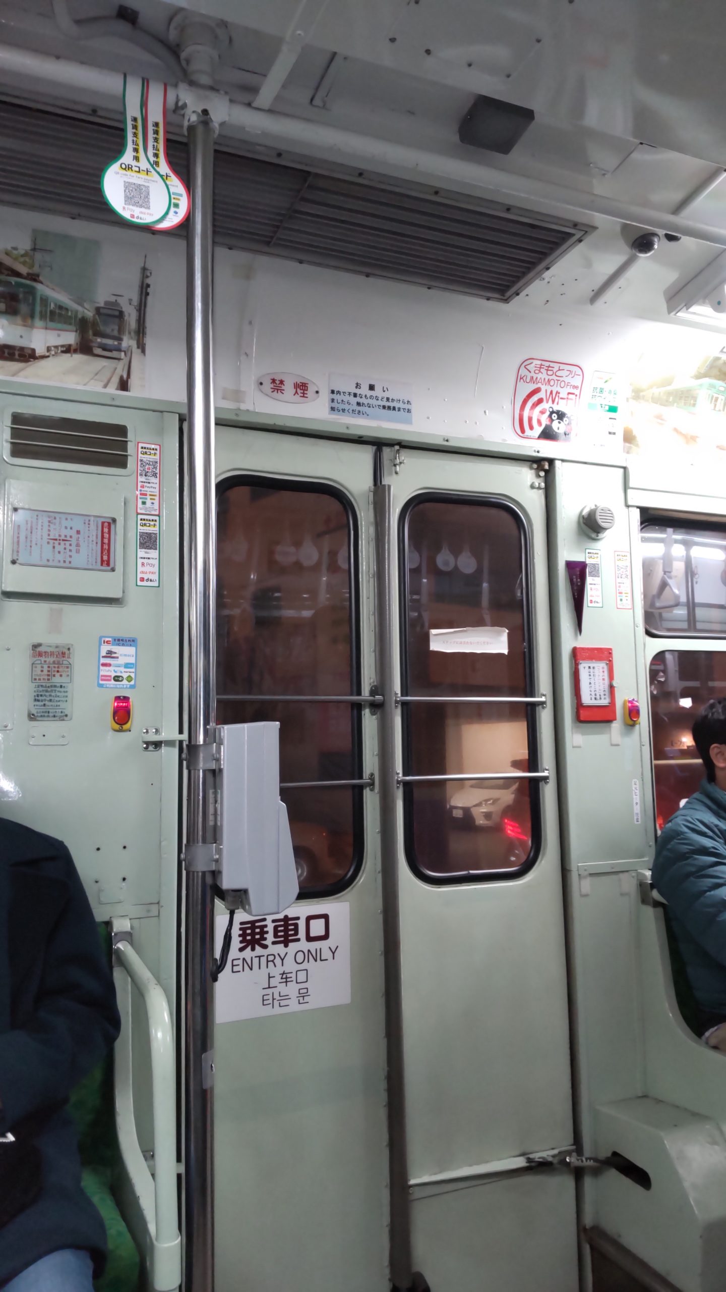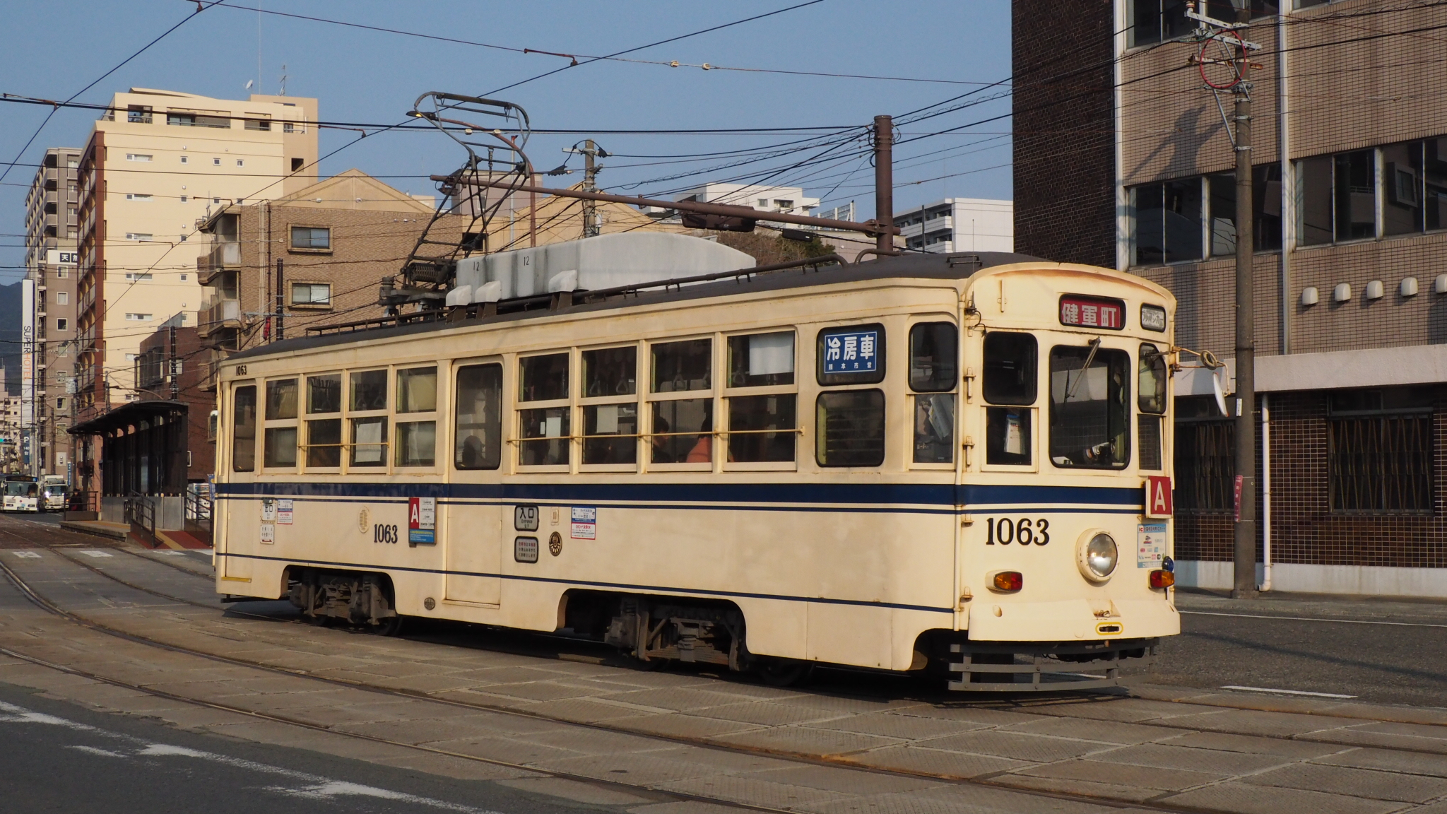 なぜか田崎橋折返しの際に前照灯を切り替えていなくてホタルのように「お尻」が光ってます。熊本駅前停車中にやっと切り替えられました慶徳校前→河原町