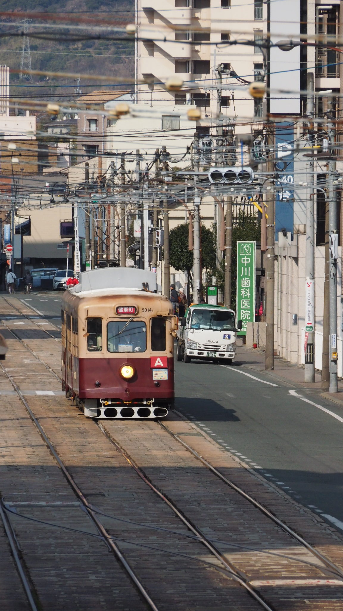 熊本市電は車のかぶりが少なめと感じました河原町にて