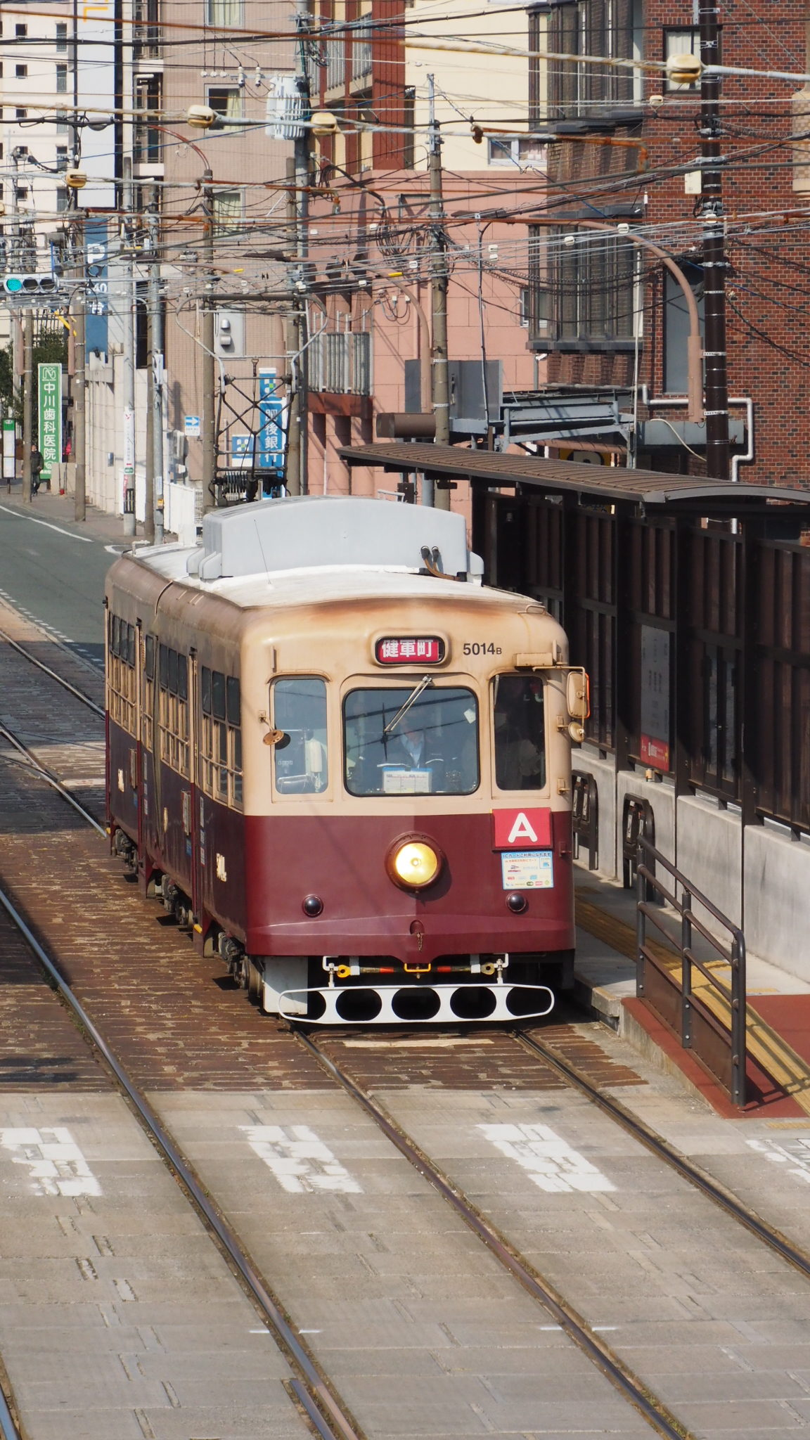 入庫待ちで、ちょっとさびしげな表情です 2/22 熊本駅前手前(田崎橋側)にて