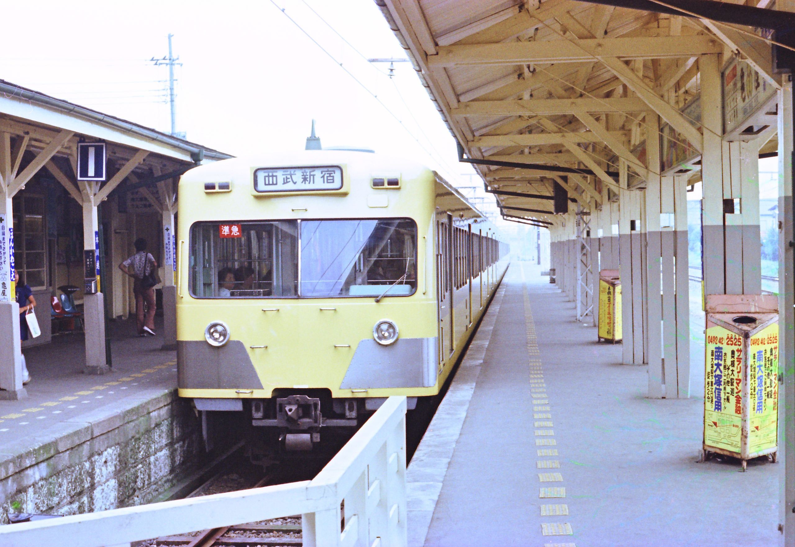 昭和51年8月に初めて東京の私鉄電車を撮影に行った時のこと、春日部で東武電車を撮った後大宮に出て川越へ、本川越から西武新宿線で西武所沢に行きました。この駅はちょうどアルファベットのエックスのような形に西武の2大幹線が交わったところにある駅で、東京なら東京という同じ方面に向かう列車が反対方向に出ていくことになり、同じ駅から北へ出て行く二つの路線の行先が一方は池袋でもう片方は川越方面、南へ出て行くのの一方が新宿で片方は飯能方面と、それぞれ同じ方向に出て行くのに行先は反対方向というので何となく不思議な感じがしたものです。