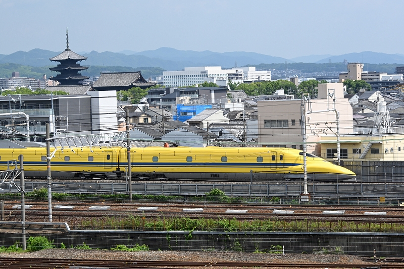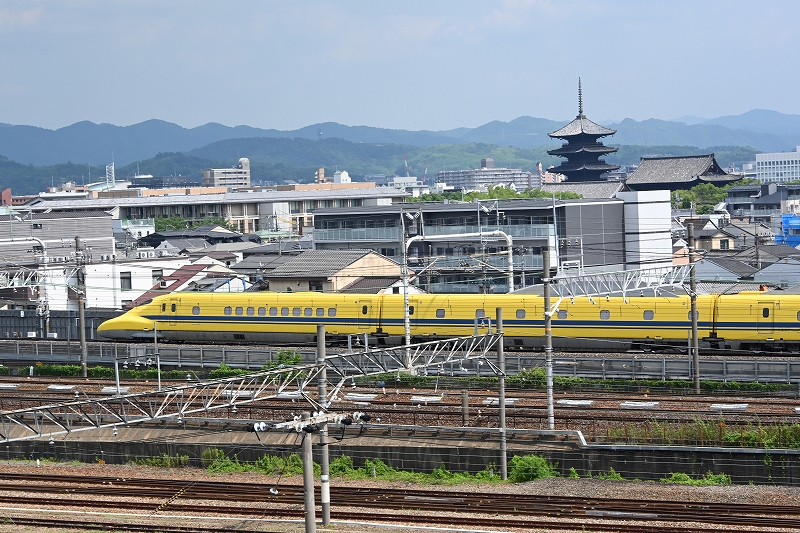 京都鉄道博物館へ行ってきた JR西日本京都鉄道博物館で展示されている、特急「つばめ」のヘッドマークです。 2025.07.01 京都鉄道博物館に行く時、東寺駅で8000系のL86編成に出会いました。8A系が増備されている中、まだまだ頑張っています。奈良行き急行です。 クロ151系 特急「こだま」の正面です。連結器カバーの塗装が本来の塗分けになっていますが、中央部分がチョッと違うのですが・・・。 ドクターイエローT5編成です。今日は、「のぞみ検測」で博多まで走ります。京都駅から出てきたところです。 東寺の五重の塔を過ぎて、西へ急ぐドクターイエローT5編成です。1号車は、923-3001JR西の車です。 東寺の五重の塔を左に見て、西へ急ぐドクターイエローT5編成です。最後尾の7号車は、923-3007JR西の車両です。 「がんばろう能登」のヘッドマークを掲げた、EF510 508号機です。もと、寝台特急「北斗星」の牽引機関車です。 「Wonderful Dreams Shinkansen」は、東京ディズニーリゾートとJR東海が協力して誕生した、東海道新幹線が登場してから60年で初めての特別塗装の新幹線です。映像では見ていましたが、実物を見るのは、これが初めてです。今年の2月21日から走り出しました。9月中旬まで走るようです。関西空港から京都に帰ってきた特急「はるか」とすれ違う「こだま715号」新大阪行きです。 「Wonderful Dreams Shinkansen」「こだま715号」新大阪行きの1号車から5号車です。東寺の五重の塔をバックに、新大阪へと急ぎます。 「Wonderful Dreams Shinkansen」「こだま715号」新大阪行きの12号車から16号車です。後ろに東寺の五重の塔が見えます。 大好きなC59164号機です。この日は運転席に入ることが出来ました。しっかり磨かれています。 扇形車庫に「きかんしゃトーマス」がいました。<登場期間> 2025年4月29日(火・祝)~2026年1月12日(月・祝)とのことですので、まだまだ見られます。 スロネフ25501が磨かれて、美しい姿で展示されていました。 帰宅時、大和西大寺駅で、8A編成の25年度配置分で、一番新しい8A16編成を見ました。 コメント 名前:塚本 勝美 : 投稿日:2025/07/01(火) 00:18:35 ID:Y3NTI1Nzg 去る6月27日に、1年ぶりに京都鉄道博物館へ行って来ました。 この日は、ドクターイエローの「のぞみ検測」の日でしたので、博物館の屋上から撮りました。また、ディズニーの新幹線列車も撮ることが出来ました。その他、在来線の列車も撮ることが出来ましたので、それらを、投稿します。 この屋上にいると、いろんな列車(貨物列車を含め)を見ることができるので、飽きることなく楽しんでいました。 館内では、いろんな車両と再会しました。C622、C621、C551、C59164、D511などです。どの車両も美しく磨かれていたのを見て。感動しました。しっかり保存されていることに感謝です。 一番嬉しかったのは、151系「こだま」の連結カバーが、以前は赤一色だったのが、本来の上半分が赤で下半分がグレーに塗り替えられていたことです。でも、まだ中央部が本来の塗装ではないので、満足はしていません。もう少し大きくして~。 返信 名前:南本利治 : 投稿日:2025/07/02(水) 11:45:52 ID:A4NjAzODE 151系先頭車は弁天町にあった「交通科学博物館(開設時は「交通科学館」)にあった前頭部実物大模型(模型とはいえ、運転台も備えた立派なものでしたが)のを運んだんですかね?連結器カバーは当初確かに塗り分けられていたのを、山陽特急時代実物が赤一色に塗りつぶされたのに合わせて塗り替えられたのか、いつの間にか赤一色になっていました。今回せっかく塗り分けに戻したのならもう一寸考証して欲しかったですね。これではまるで塗り分けテープに傷があって赤がはみ出したみたいに見えます。あわせて運転台ガラス押さえのHゴムも灰色にして欲しいところです(これは個人的に)。弁天町時代は客室内にリクライニングシートが設置されていて自由に座り心地を試せました。 返信 名前:塚本 勝美 : 投稿日:2025/07/20(日) 00:02:00 ID:AzOTg3Mjc コメントをいただき、ありがとうございます。 連結器カバーの塗分けは、151系というなら、しっかり、はっきり塗ってほしいですね。 「雷鳥」の481系は、最初から赤一色でしたが、「こだま」「つばめ」の151系は、上部を赤色、下部を灰色とに塗分けられていましたが、中央に赤色が下向き▽に塗られていましたね。展示する以上、初期の塗分けであってほしいと思うのです。願いはただそれだけ!次回行った時に、要望してこよっと。 返信
