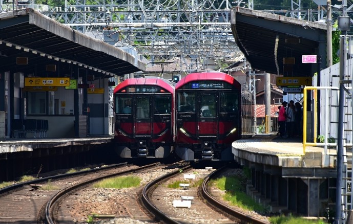 8A12編成 営業運転開始! 近鉄ようやく 営業運転で走る8A12編成 京都発大和西大寺行き普通列車です。2025.7.7 平城駅~大和西大寺駅間 2025.07.072025.07.29 ようやく営業運転をしだした8A12編成です。7月7日の今日は、朝から橿原線・京都線で走っていました。平城駅を発車する大和西大寺行きの8A12編成です。ステップも見えます。 平城駅に進入する8A12編成大和西大寺行きです。8A12編成とすれ違いするのは、8A11編成京都行き急行です。投入が1か月ほど違うのですが、汚れ具合が違います。 大和西大寺から、京都行き普通列車として、折り返してきました。また、京都へ向かいます。 ステップが見えます。チョッと傷がついています。いろいろと試されたのでしょうね。 22000系橿原神宮前行き特急とすれ違います。顔の大きさが違います。8A系は大きいです。おでこのせいでしょうか? 京都から帰ってきました。大和西大寺行きの普通列車です。足回りの塗装も、まだ美しいです。 大和西大寺行き8A12編成です。西大寺まで行くと、車庫に入るようです。今日の運用は終わりかな? コメント 名前:塚本 勝美 : 投稿日:2025/07/07(月) 17:24:44 ID:U4NzkzMjU ようやく8A12編成が、営業運転で走っているところを見つけて、写真を撮りました。 ようやく走り始めました。これで気持ちが晴れました。 「ステップの作動が、各駅のホームで違うからうまく行かないので、取ってしまうとか・・・」といううわさも聞かれたのですが、まだ付いています。新大阪駅でステップが実用化されているようですので、車両に着いたステップもこれから必要なものになるのではないかと思います。8A系車両は、「人にやさしい電車」なのですから・・・。今後の投入車両に、「トイレ」が付き、より「人にやさしい電車」になっていきます。期待しましょう。 返信