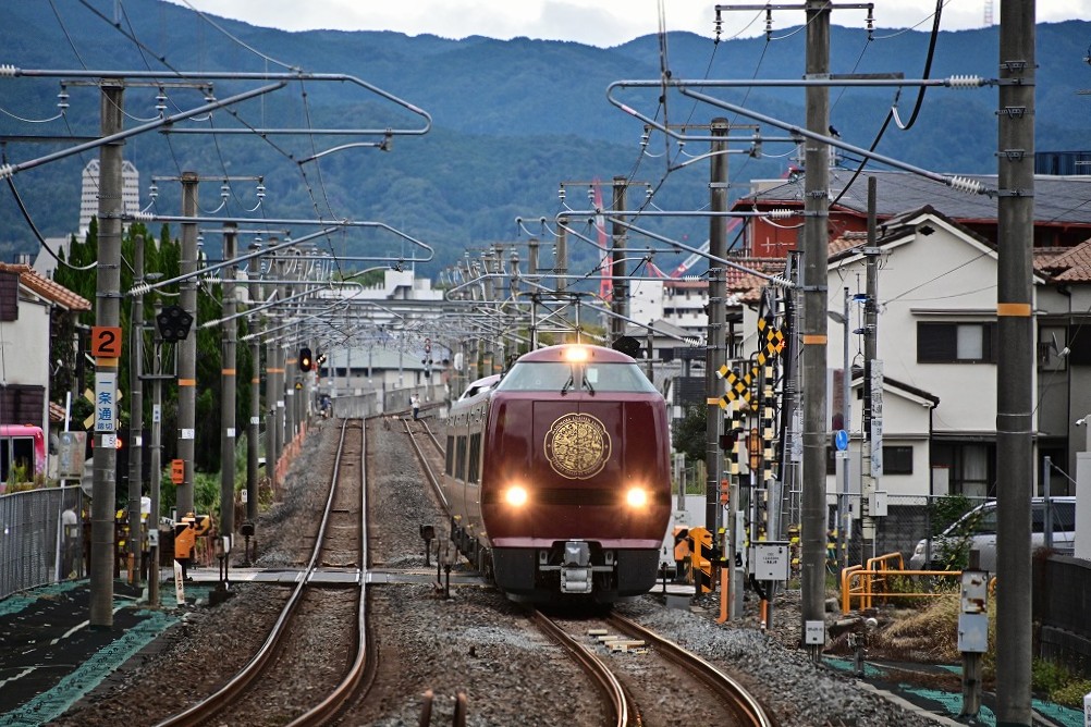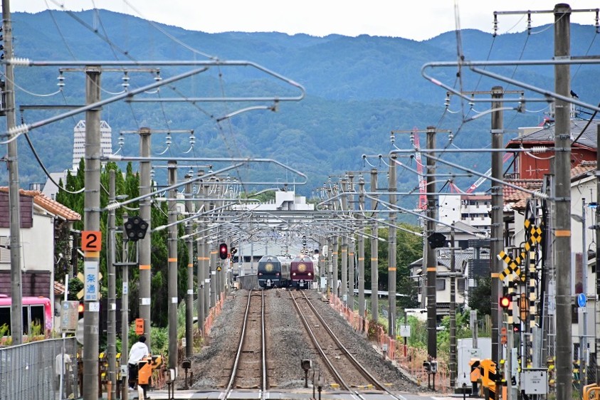 特急「いにしへ」が走りました。 JR西日本今秋の特急「いにしへ」の1番列車が、京都駅から走ってきました。あれ?あれ? ここは、木津駅と平城山駅間です。ゴールの奈良駅まで、あと少しです。 2025.10.262025.10.30 10月25日(土曜日)「いにしへ」の初日の1番列車です。特急「まほろば」の安寧編成です。春のような「いにしへ」のヘッドマークはありません。特急マークもありません。分かっていたことですが、がっかり! 特急「まほろば」の安寧編成の特急「いにしへ」が、奈良駅に向けて、走って行きます。「MAHOROBA LIMITED EXPRESS」のシンボルマークが光り輝いています。逆光でも光るのが素晴らしい。 奈良駅でお客さんを降ろして、奈良電車区に入って行くところです。15時過ぎまでいます。 10月25日の特急「まほろば」です。悠久編成がその任に就いています。奈良電車区からの奈良駅への送り込みです。前面の墨色に黄金の特急「まほろば」のヘッドマークが光ります。 佐保川橋梁付近で、「特急 まほろば」と「特急 いにしへ」がすれ違います。一瞬の並びです。安寧編成と悠久編成とが並びます。遠くから300㎜の望遠で撮りましたが、役不足です。 特急「まほろば」の悠久編成とすれ違った特急「まほろば」の安寧編成の特急「いにしへ」が、京都へ向けて走ってきます。 10月26日(日曜日)特急「いにしへ」の2日目は、悠久編成が使われました。今後も、このような使い方がされるのでしょうね。2編成で。あの春の「いにしへ」は、何処へ? 2日目の特急「いにしへ」は、特急「まほろば」の悠久編成でした。上り線より1段高い下り線を、奈良に向けて走って行きます。 奈良駅でお客さんを降ろして、奈良電車区にやってきた特急「まほろば」悠久編成の特急「いにしへ」です。これから、奈良電車区に入ります。 特急「まほろば」と特急「いにしへ」のすれ違いの並びを期待して、佐保川橋梁に来ましたが、この日は、丁度、橋梁の上ですれ違ったので、撮ることはできませんでした。残念!次回に挑戦です。あと2回しかありませんが・・・。奈良駅を出発して佐保川橋梁にさしかかる特急「いにしへ」です。小生の背後には、奈良駅に進入しようとする特急「まほろば」が接近してきています。特急「いにしへ」の前面に、接近する特急「まほろば」のヘッドライトが映っています。すれ違ったところが、佐保川橋梁の上で、小生の横でした。 おまけ・・・見ることや乗車することの日が、残り少なくなった8000系L86編成に乗車しました。 8000系L86編成の8586号車の運転席です。ブルーの運転台です。8000系の特徴です。 コメント 名前:塚本 勝美 : 投稿日:2025/10/26(日) 23:39:14 ID:I0OTg2MjY 今秋、春に続いて特急「いにしへ」が走るとのことで、「いにしへ」のヘッドマークと特急マークを期待したのですが、JR西日本が発表した広報で、「安寧」と「悠久編成で運転・・・とあったので、楽しみは「どちらが走ってくるのかな?」「まほろば」と「いにしへ」の並びが撮れるかな?・・・でした。 運転日、今日で2日が過ぎました。あと2日です。頑張って出かけます。遠くには行きませんが・・・。天候に恵まれますように・・・。 2日間の成果を、投稿済ます。 返信