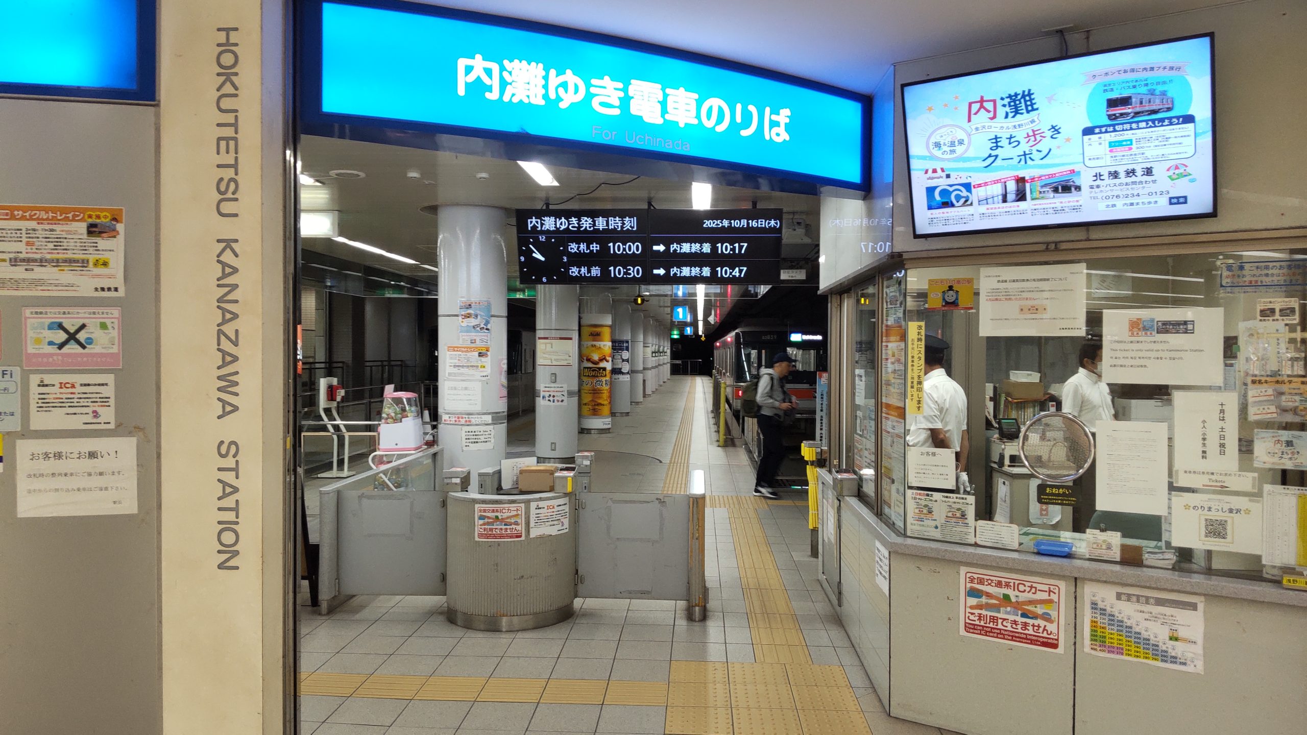 浅野川線の終点「内灘駅」に着いた時、同じ電車から降りたオーストラリアから来られた(後で塚根さんに教えてもらった)我々よりも年上のご夫婦と塚根さんの会話が盛り上がっていて、オーストラリアの方曰く「これから海水浴に行ってきます」と仰ったとのこと。気の利いた「冗談」を言える外人さんも凄いですが、さしで対等に「会話」のできる塚根さんも凄いです。だてに海外に行かれてません。