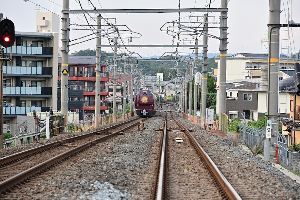 特急「いにしへ」の最終日・・・「嬉しくなるもの」がありました JR西日本特急「いにしへ」の最終日(11月2日)は、安寧編成でした。運転席の窓に嬉しくなるものがありました。 2025.11.032025.11.04 特急「いにしへ」の最終日は、特急「まほろば」の安寧編成でした。2日目の悠久編成を撮った同じ場所で撮りました。木津駅~平城山駅間 奈良駅へラストスパートです。ここを曲がると、すぐに平城山駅です。木津駅~平城山駅間 奈良電車区に入る、大阪からの特急「まほろば」の悠久編成です。特急「いにしへ」より前にやってきます。 特急「まほろば」の後に続いて、特急『いにしへ』が奈良電車区に入って行きます。 特急「まほろば92号」悠久編成の奈良電車区への回送です。佐保川橋梁を通過します。 特急「いにしへ」の奈良駅への送り込みです。運転席の窓に、何か札のようなものがあります。カメラのデスプレーで見ると、「いにしへ」と書かれているようです。(一緒に撮っていた青年が発見)京都へ行く時に確認します。 念願の安寧編成(京都行き特急「いにしへ」)と悠久編成(大阪行き特急「まほろば」奈良駅送り込み)の並びを撮ることが出来ました。近場撮影3日目(チャレンジ4回目)で、ようやく実現です。安寧編成の特急「いにしへ」の運転席の窓に注目です。 運転席の窓をトリミングして拡大すると、なんと「いにしへ」の表示がありました。最終日に表示するとは…。朝の奈良行きの写真を拡大して見ると。はっきりとはわかりません。でも、最後の最後に「いにしへ」の表示だと分かって、嬉しくなりました。粋な計らいをしてくださいました。ありがとうございました。 一路京都へとが知り去っていく特急「いにしへ」です。最後の最後に特急「まほろば」でなく、特急「いにしへ」だということを示して、この秋の運用が終わりました。良かった。 コメント 名前:塚本 勝美 : 投稿日:2025/11/03(月) 14:17:34 ID:I1NTU4MzU 今春に京都・奈良間を走った特急「いにしへ」が、この秋に4回走りました。 春に、遠くからしか撮れなかった特急「まほろば」と特急「いにしへ」の並びを撮りたいと思い、4回とも挑戦をしました。1回目は遠くから、2・3回目はすれ違う場所の近くから挑戦しましたが、失敗。最後4回目はすれ違う場所の近くで、最後の挑戦となりました。 双方の電車がすれ違う場所は、「だいたいこの辺で…」と検討を付けて待ち受けるのですが、なかなかうまくいきません。どちらかが早かったり、遅かったりすると、すれ違う場所が異なり、撮ることができません。 4回目の最後の日は、すべてがうまく行き、撮ることが出来ました。その様子を投稿します。 また、嬉しいことに、特急「いにしへ」の表示が、運転席の窓に掲示されていました。それは、一緒に撮影していた青年が見つけました。駅停車中だと、よく見えることでしょうが、沿線で撮影していると分かりません。撮影後のカメラでの画像確認の際しかわかりません。それも、アップの写真でしか分かりません。良く見つけたものだと感心しました。 この表示は、朝の奈良行きの運転席の窓を見ると、それらしきものが掲出されているようですが、はっきりわかりません。しかし、最終の京都行きの特急「いにしへ」でそれを確認することができました。これを見て、嬉しくなりました。意気な計らいをしてくださった方に、感謝です。ありがとうございます。 返信 名前:近藤 良司 : 投稿日:2025/11/04(火) 19:35:33 ID:UwOTMzODI 塚本様 「凄い」の一言です。「安寧」編成と「悠久」編成の一瞬の「邂逅」、事前の下調べと技術、さらに「運」も味方につけ、すべての事象がひとつにまとまった「作品」、恐れいいりました‼次の作品も期待いたしております。ありがとうございました。 返信 名前:塚本 勝美 : 投稿日:2025/11/04(火) 22:36:27 ID:I2NzAyNTE ありがとうございます。 一つやり遂げたという満足感で、安堵しています。 返信