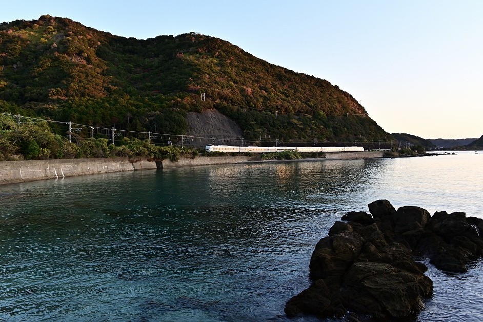 昨年も串本に行ったのですが、特急「くろしお」を使いました。その時に車内から、「ここで撮影出来たらなあ~」と目を付けた場所がいくつかありました。今回は、そこを目的地として走りました。しかし、潮岬の夕陽も見たいから、目的地では、ゆっくりしていられませんでしたので、「帰りにも寄ろう」と決めました。