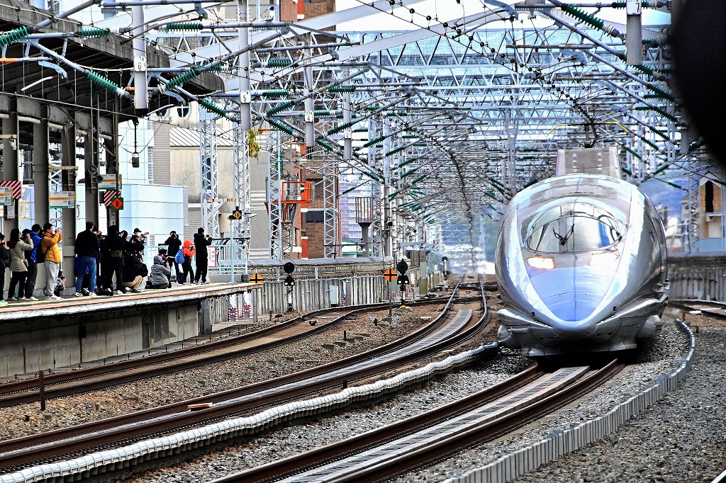 「500系のぞみ」が走る JR西日本「500系のぞみ」が西明石駅を通過します。 2026.01.25 「500系のぞみ」の送り込みの回送電車です。 送り込みの500系とハローキティの500系との並びです。この並びも見られなくなります。 「500系のぞみ」がやってきました。通過線に入りました。右上に黒い影が・・・。 通過戦を走る「500系のぞみ」です。反対側のホームからも撮影されています。右上の影が大きく邪魔をしてきます。この直後、カメラにアクシデントが発生し、撮影できなくなりました。これが最後の写真です。残念!!! コメント 名前:塚本 勝美 : 投稿日:2026/01/25(日) 20:10:15 ID:A0OTAzMTI 今日は、「500系のぞみ」が走る日ですので、西明石駅へ行って来ました。 2時間前に着き、場所取りをしたのですが、前に挙動の怪しい方がおられて、本番の時に何かが起こるのではと不安視していました。案の定、いざ「500系のぞみ」が走ってくると、予想より大きく肘が出てきて、投稿写真の黒い影になり、かぶってしまいました。ゆえに、思うような構図にはなりませんでした。大勢の撮影者がいると、こうなることは予想できたので、あきらめは速かったですが、それに追い打ちをかけたのが、カメラのトラブルでした。 投稿写真の最後の写真以降、シャッターが切れずにモタモタしてしまいました。その間に「500系のぞみ」は、遠くへ去って行ってしまいました。こんな大事な時に、カメラトラブルとは・・・。意気消沈です。 返信 名前:成瀬伸夫 : 投稿日:2026/01/26(月) 15:45:56 ID:c0MDY5MjQ 塚本さま 雪がちらつく寒いなか、リバイバル500系のぞみを撮影に行かれたのですね。 実は私も行きました。ハローキティの842Aこだま842号から リバイバル500系のぞみまでの約2時間半ほど、寒風吹きすさむホームに居たのです。 前回の3月9日は、リバイバル500系のぞみを撮影しようと構えていた時、急に前に飛び出して来た方に邪魔をされ、まともに撮れなかったので、リベンジのつもりでした。 今回は、撮影者の数がやや少なかったため、構図的には今までの私の形で撮影できたものの、塚本さんのような素晴らしい絵にはできませんでした。成瀬 返信 名前:塚本 勝美 : 投稿日:2026/01/26(月) 17:48:39 ID:I1MDE4Nzg やはり行かれていましたか。寒かったですね。 でも、雪の舞い散る中を走る「のぞみ127号博多行き」が撮れたので、良かったです。 「きっと来ておられる」と思い、周りを探したのですが、見つけることが出来ませんでした。 今回は、だれにも邪魔されずに撮影が出来たそうで、良かったですね。小生は、邪魔されたので、次回リベンジをしたいと思っていますが、「あるかなあ~」なんて、弱気になっています。ぜひあってほしいです。最後の最後でいいから・・・。 返信