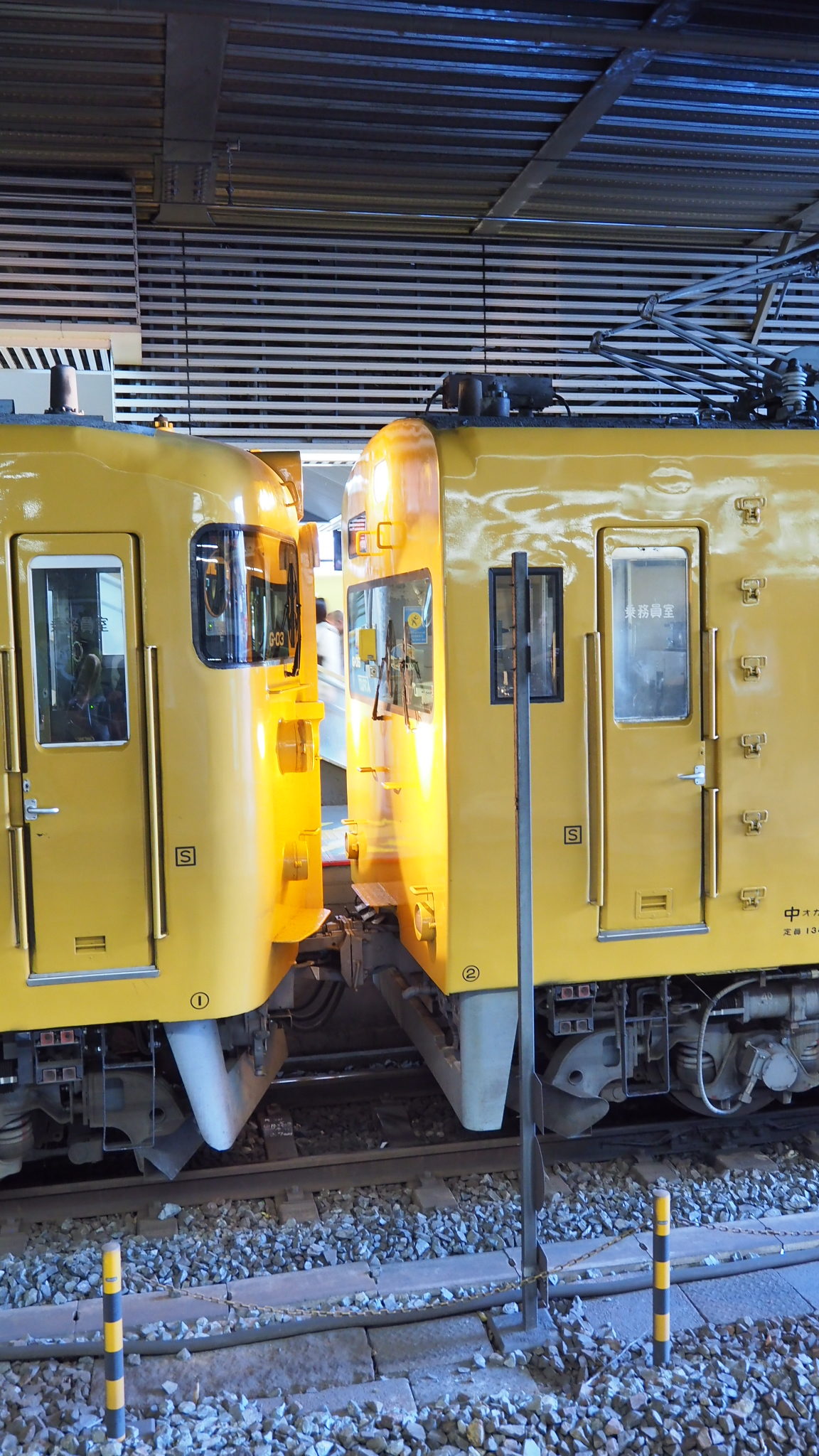 G編成×2の連結面です。右側の「切妻」がクモハ114新見向きです。 非貫通のため「通り抜け」はできません。