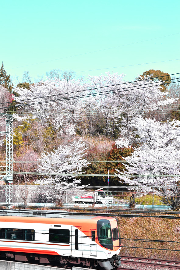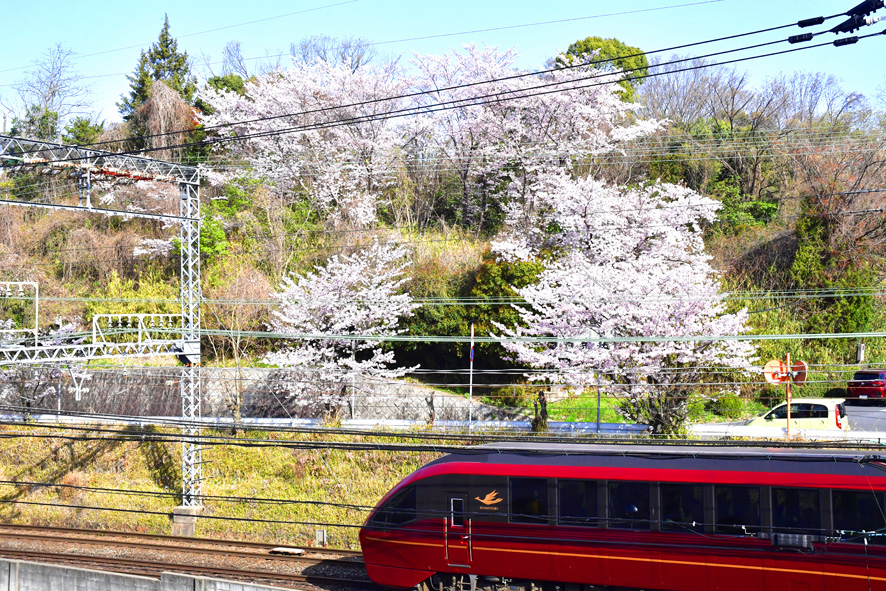 お待ちしておりました。桜花爛漫の美しい写真を見せていただきました。ありがとうございます。画面いっぱいに満開の桜があり、特急と重なっていないで写真が撮れていて良いですね。こんな写真が撮れる良い位置に自宅があるのが、羨ましいです。