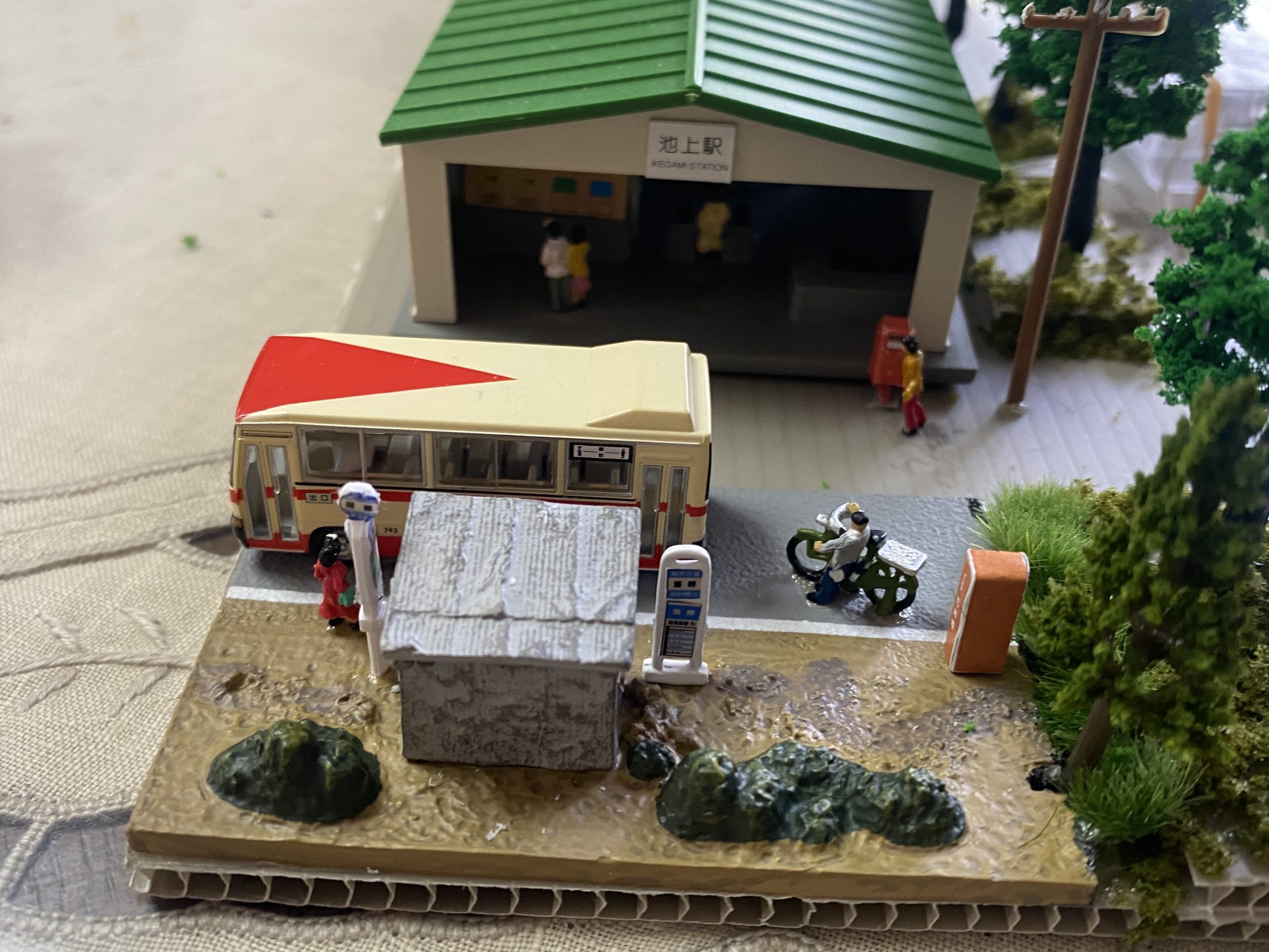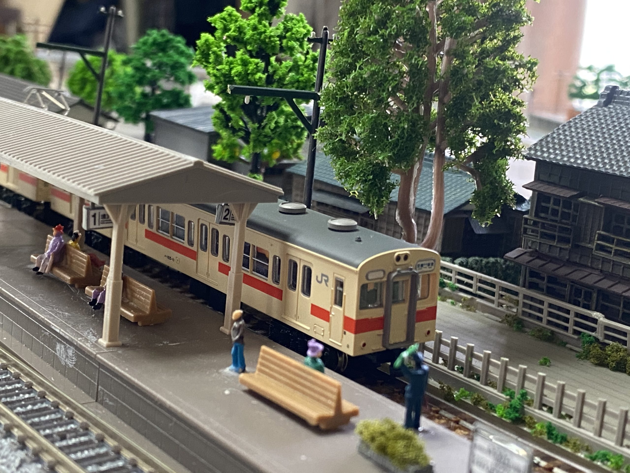 - 先日、作成した昭和の国鉄ローカル駅ジオラマで走らせるシーンの続編です。若い頃、実際に現場に行ってカメラを向けた経験はありませんが、鉄道雑誌で目に浮かべた情景を勝手に妄想?してみました。車両背景や時代考証もメチャクチャだと思いますが、遠くなった昭和に思いを馳せてご覧頂ければ幸いです。