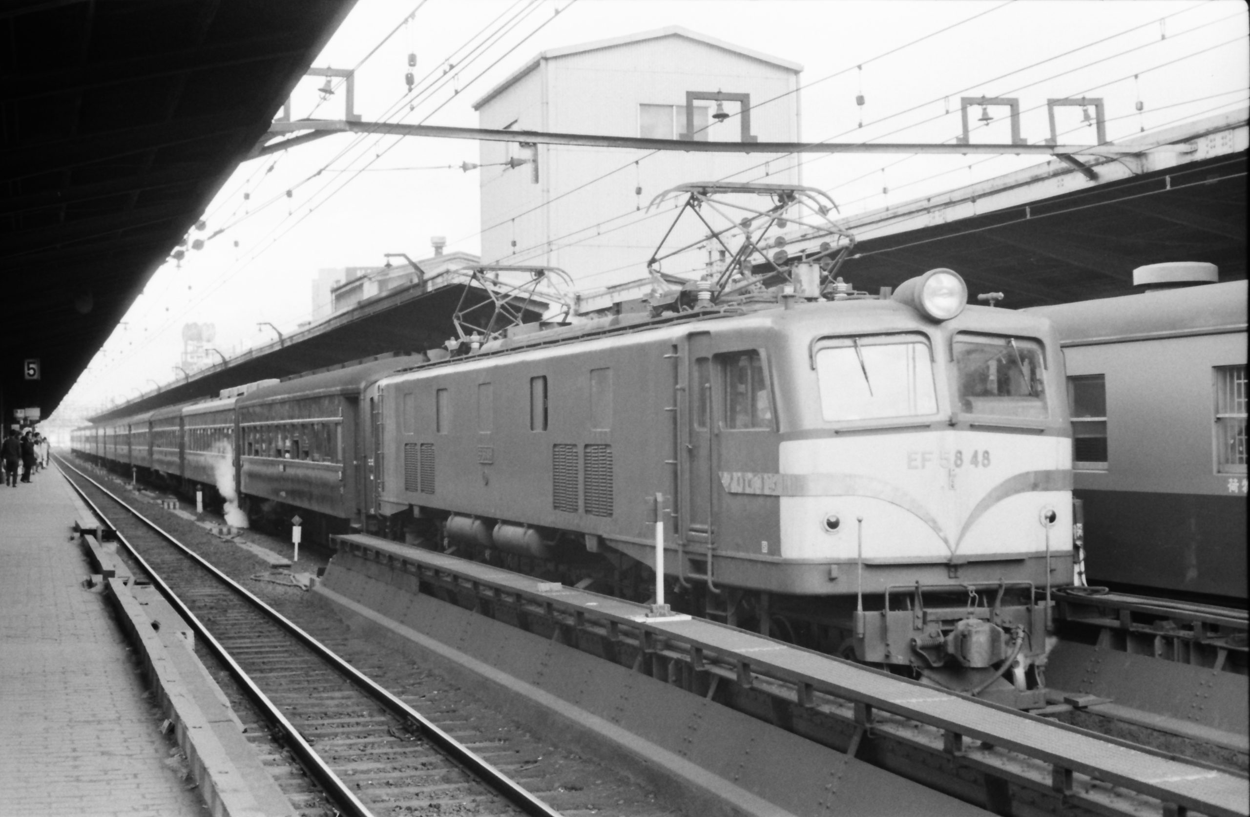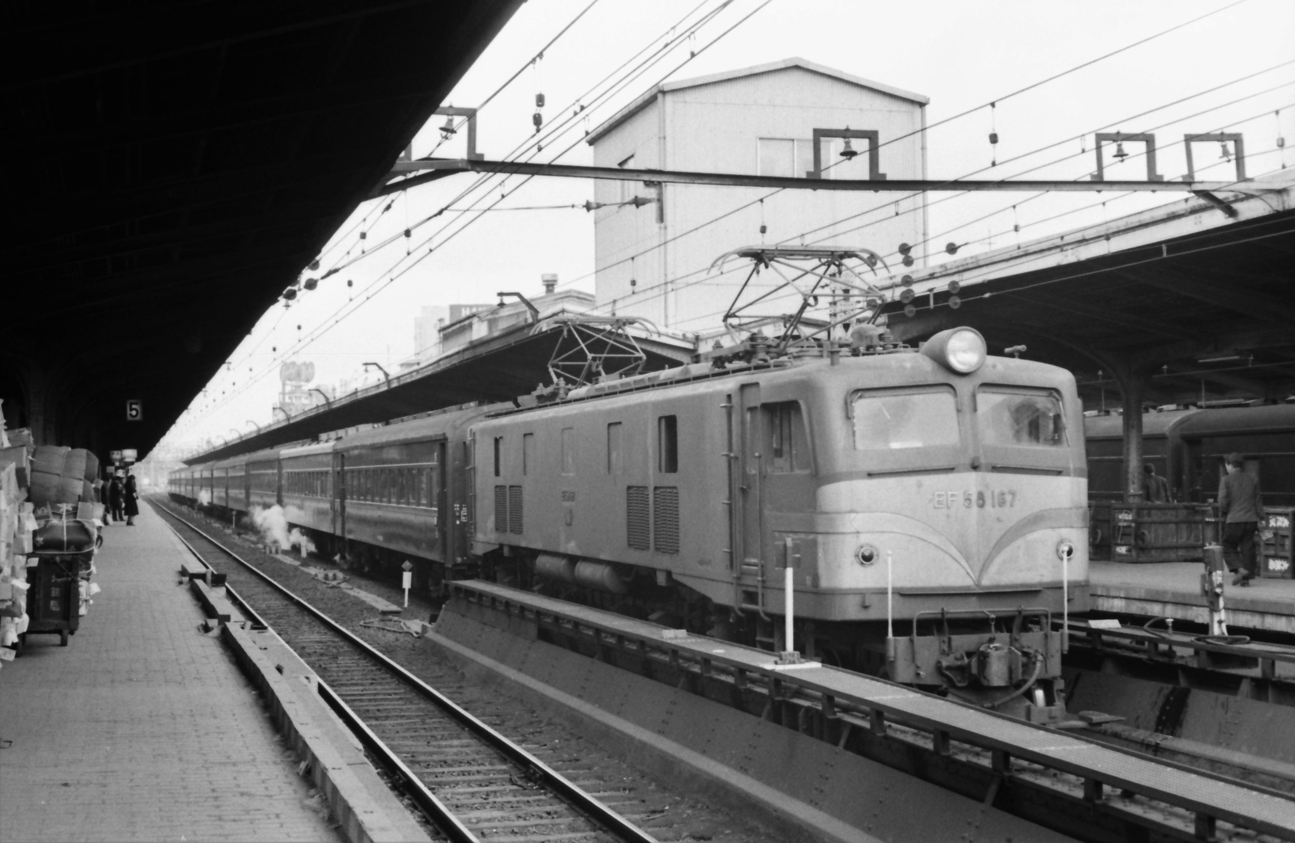 10番線に停車していた「あかつき」が先発した。EF58牽引の臨時急行「しろやま52号・ひとよし」