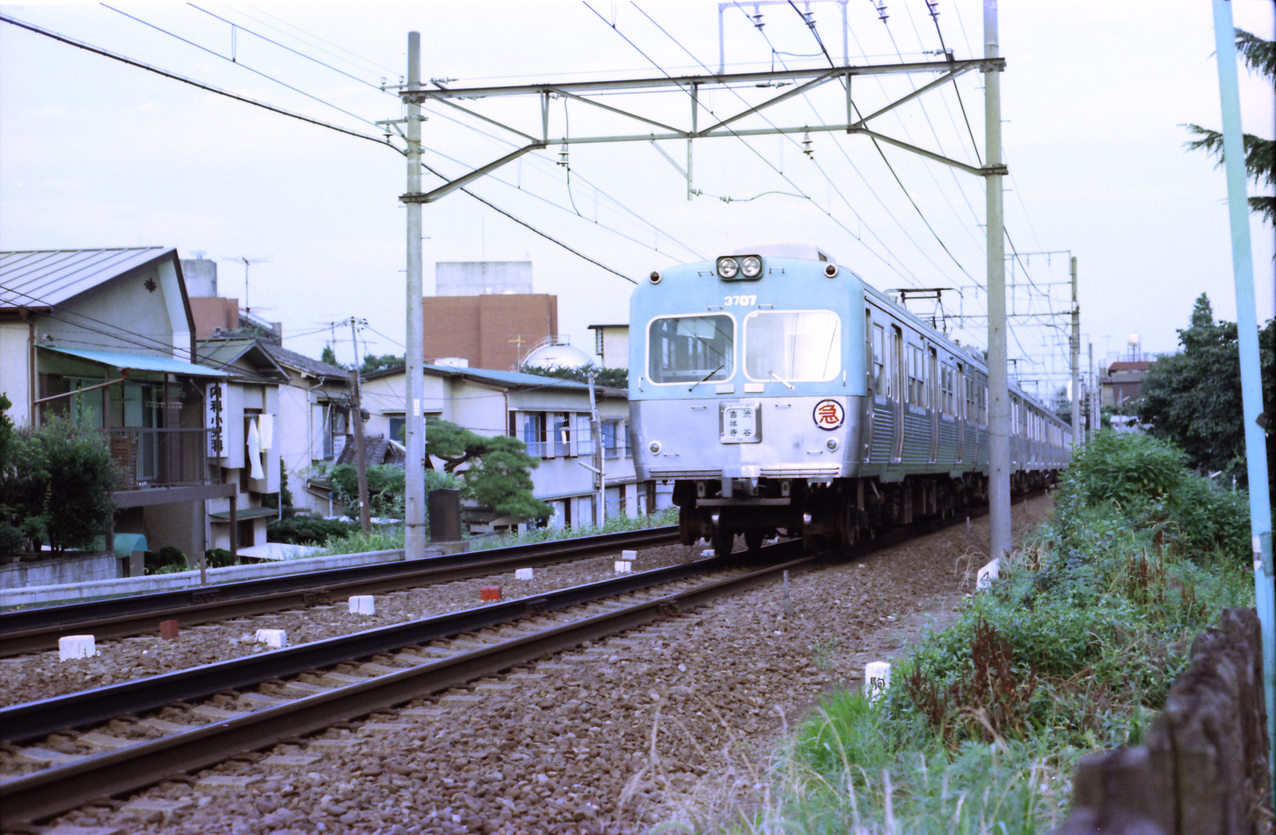 1. 社会人となって丸三年が過ぎ懐具合は良くなったものの自由な時間は少なくなりました。そんな頃、東京の私鉄車両を撮りに行こうかということになり夏期休暇を取って急行「銀河」で上京しました。横浜で降り、京急、相模、小田急を撮影、下北沢で乗り換えて京王電鉄井の頭線というのが当日のスケジュールでした。カラーの発色(特にライラック色)が悪いですが、一応7色全部撮れていたようです。京王といえば5000系ですが、3000系も京王を代表する車です。この頃の東京の電車は新車といえども戸袋窓があったり二段窓の桟があったりでごちゃごちゃした印象ですが、模型誌に制作記事が載り一度実物を見てみたいと思っていました。今から10年程前に全車撤退し現在は1000系の天下のようですが、個人的には3000系の二枚窓の方が好ましく思います。