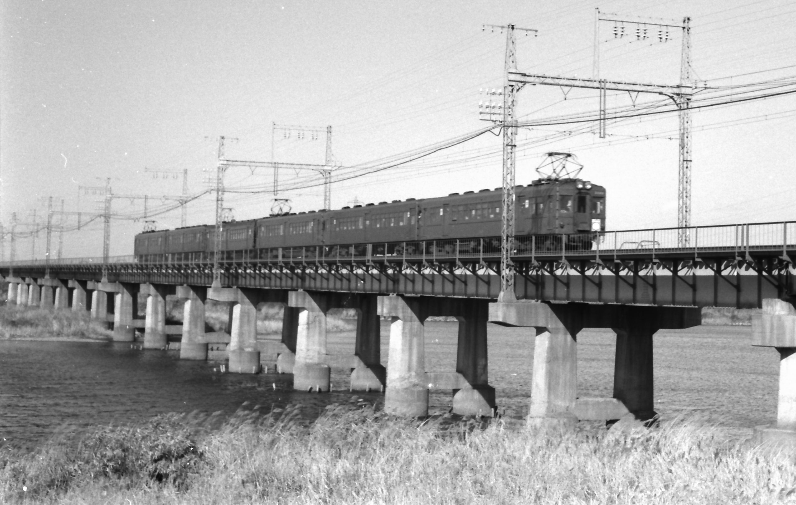 宮川を渡るモ2243他 S45.1.4 小俣ー宮町
