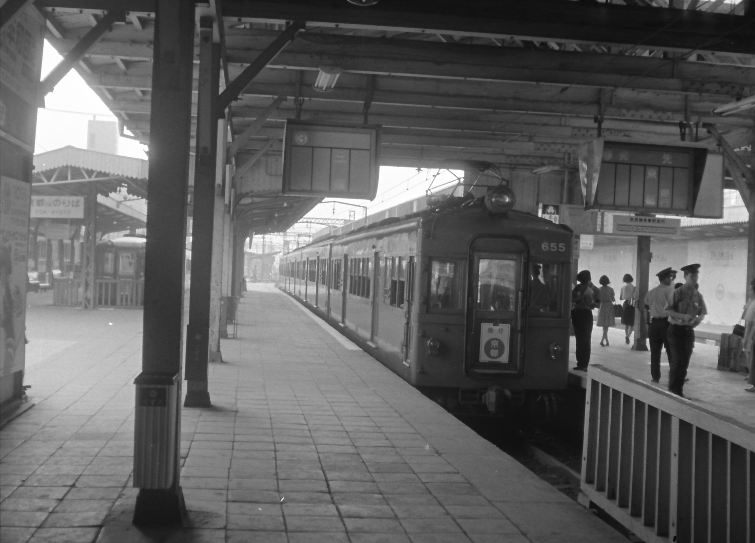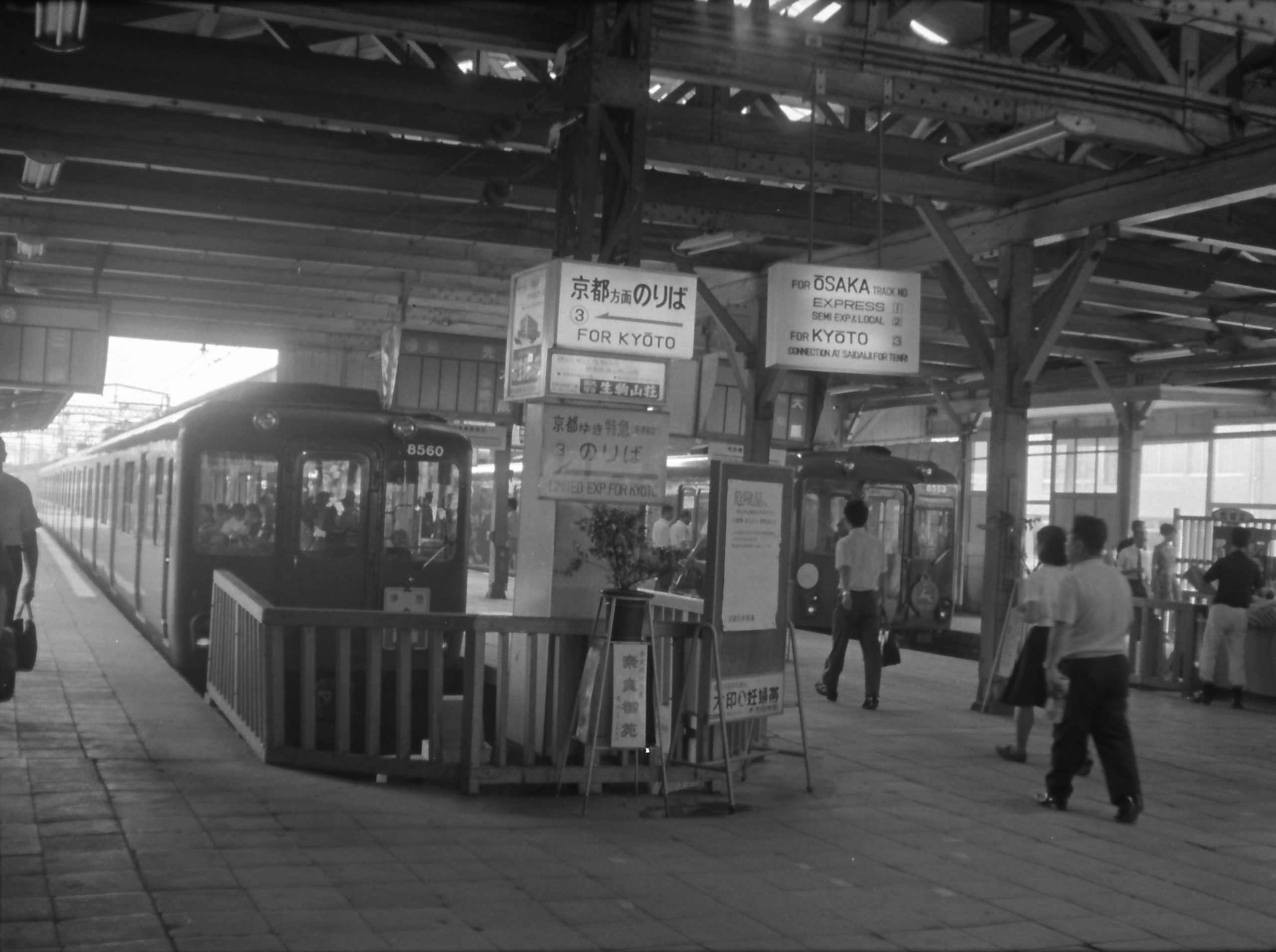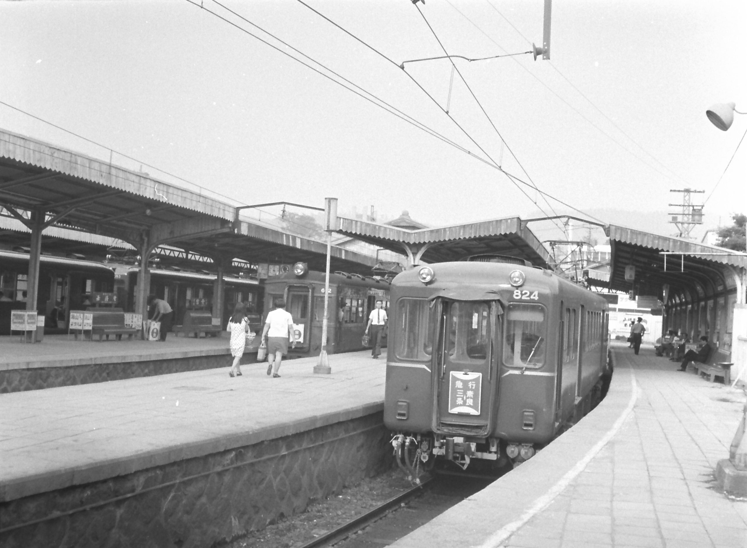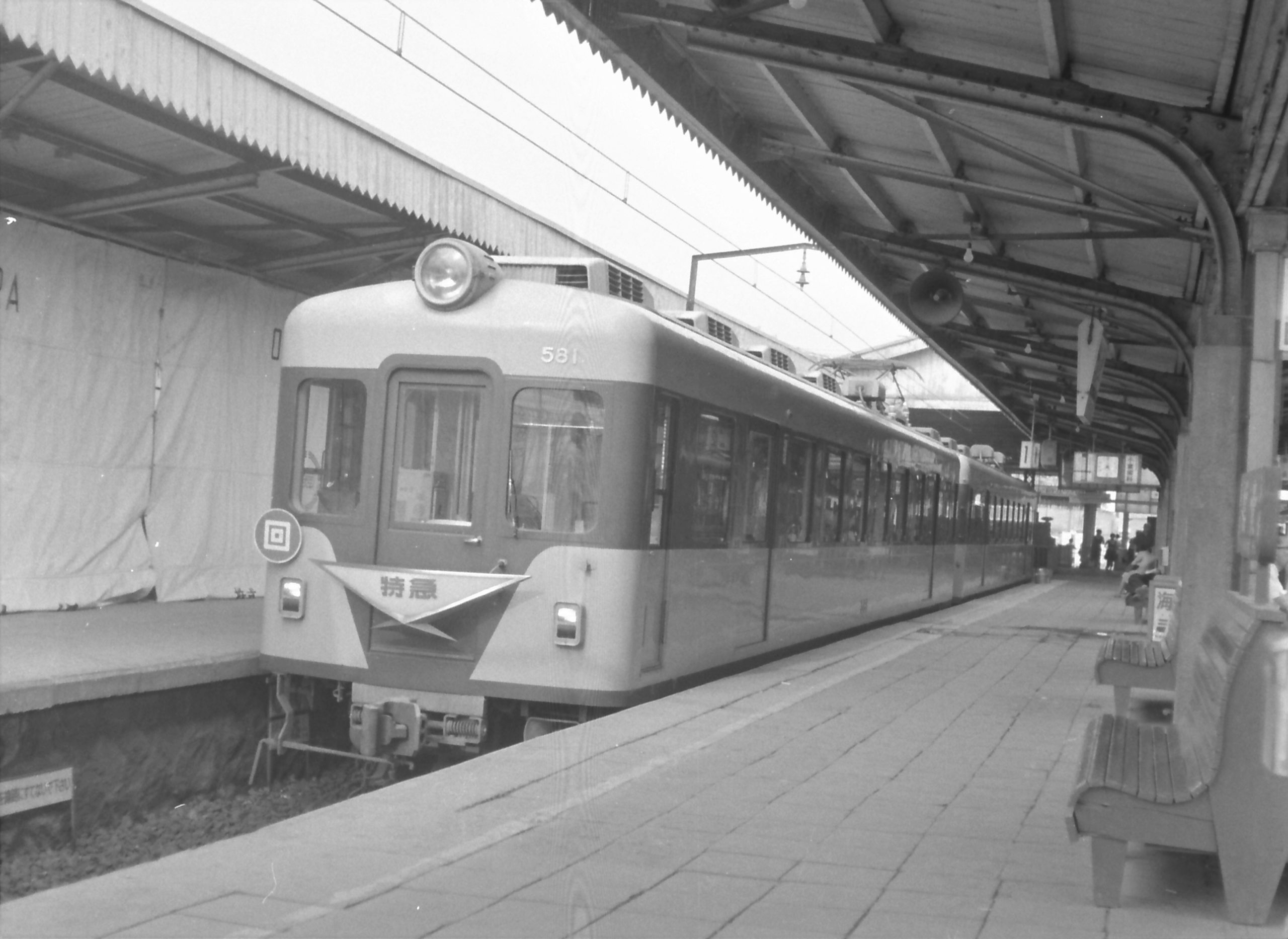 近鉄奈良駅との最初の出会いは幼稚園時代。遠足で奈良公園を訪れたときに乗っていた電車がそれまでまちの中を走っていたのが、車窓にせり上がってくるようにプラットホームが現れ・・・というのが今も覚えている光景です。中学になって買ってもらったカメラは当時流行していたハーフサイズでピント合わせも「遠景」「人物」「草花(だったかな?)」の3段階しかなかったこともあって、拡大したときに画質やピントの甘さが気になります。それとスキャナーを使ったことのある方はよくご存じでしょうが、フィルムをスキャンしたときに塵や埃が映り込んでしまったり、縞模様が現れたりということが多々あります。事前にスキャナーのガラス面を確認して大丈夫と思っても、いざ拡大してみると白い丸や細長い線が見つかりがっかりというのもしばしばです。そのようなわけで、お見苦しい写真をお目にかけることもあると思いますが、どうか御勘弁ください。