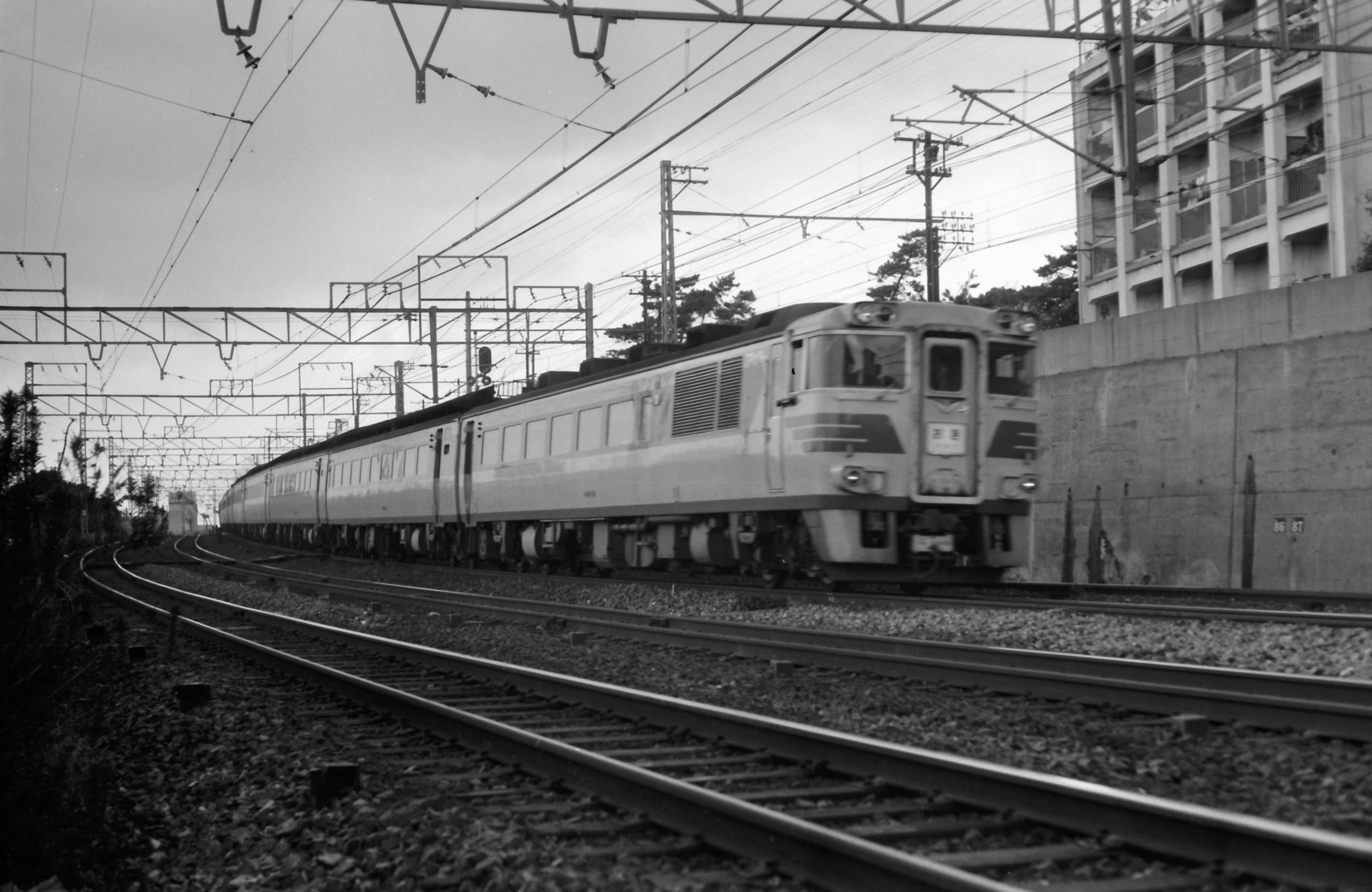 • 一連の投稿は次回で完了しますが、朝6時頃の電車に乗って8時頃から撮影を開始、須磨~垂水間を往復して午後2時を回るまで飲まず食わず、若かったからできたということでしょうか。それから今見返してみると垂水駅付近は列車全景が架線柱に邪魔されずに撮れた絶好の場所だったようです。この場所でもっと粘るべきでしたね。