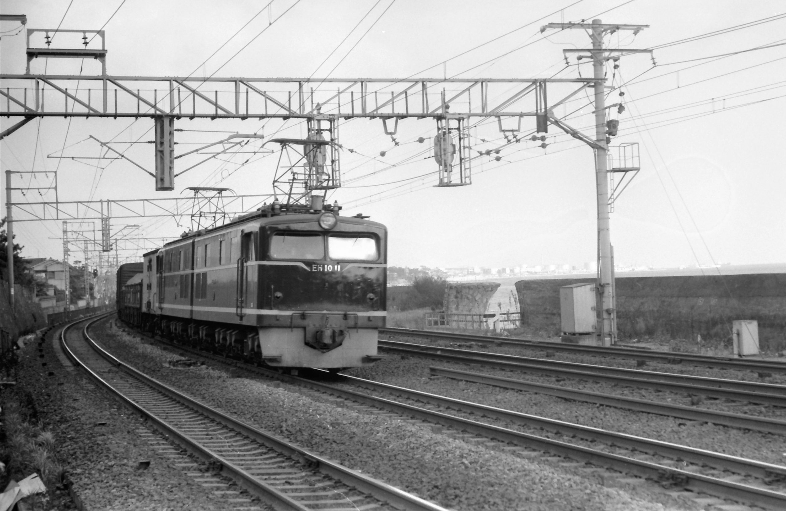 ベルトコンベア付近を行く6603M「鷲羽6号」2車体で一つのマンモス電機EH10