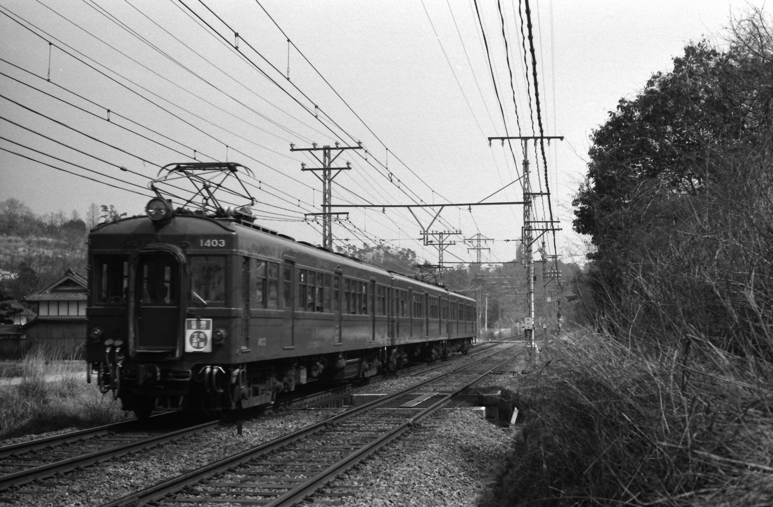 モ1400の相棒ク1500型  名張にて S45.5.5名張駅構内に留置される1400系