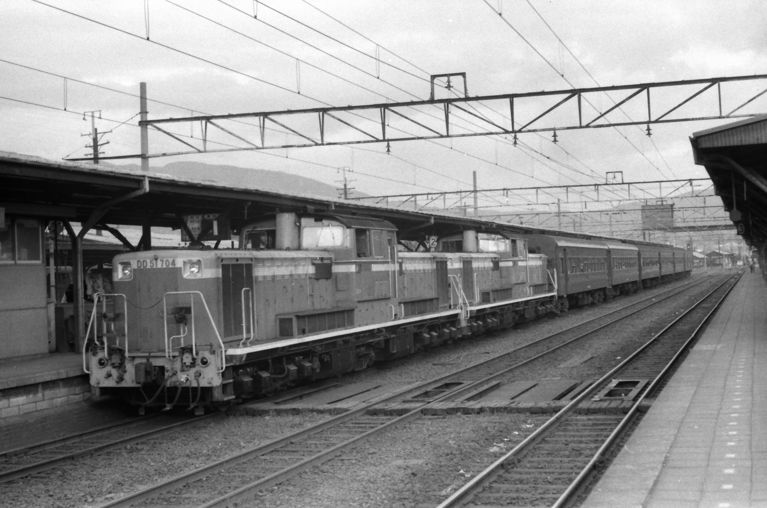 46夏信州合宿私の記録 JR全般大阪駅で宮崎を目指し出発を待つキハ82系「日向」 S46.8.23 2022.02.05 投稿内容: RRC昭和46年(1971)夏合宿の思い出を先ずは前哨から 追加投稿画像: タイトル: 後部に「なは」併結の13両編成で発車を待つ タイトル: 呉線電化で誕生した大阪-呉間電車急行1313M「安芸」 タイトル: 軽量客車を牽くEF58キャプション: メモがないので確かではないが、奥に新幹線が見えるので名古屋駅岐阜方を捉えた写真。急行「桜島・高千穂」か。 タイトル: 塩尻に居たD51 S46.8.23 タイトル: 中央西線の客レを牽くDD51重連 S46.8.23 塩尻 タイトル: 貨物列車はD51が担当 S46.8.23塩尻 コメント 名前:南本利治 : 投稿日:2022/02/05(土) 21:53:51 ID:A1ODU0MjE 前回の投稿から少し間が開いてしまいました。相変わらずの白黒写真で恐縮ですが、昭和46年8月23日から行われた信州合宿のときの写真を発表させていただきたいと思います。記憶が頼りの記述ですので誤りがあるかも知れませんがよろしくお付き合いください。 信州合宿出発は大阪、東海道本線で名古屋へ、そこから中央線の普通客レで塩尻へ。当時電化は中津川まで、周遊券は急行列車利用可でしたがそこは鉄道同好会、スハ43系(?)の名古屋発普通客レで信州入りとなりました。 返信