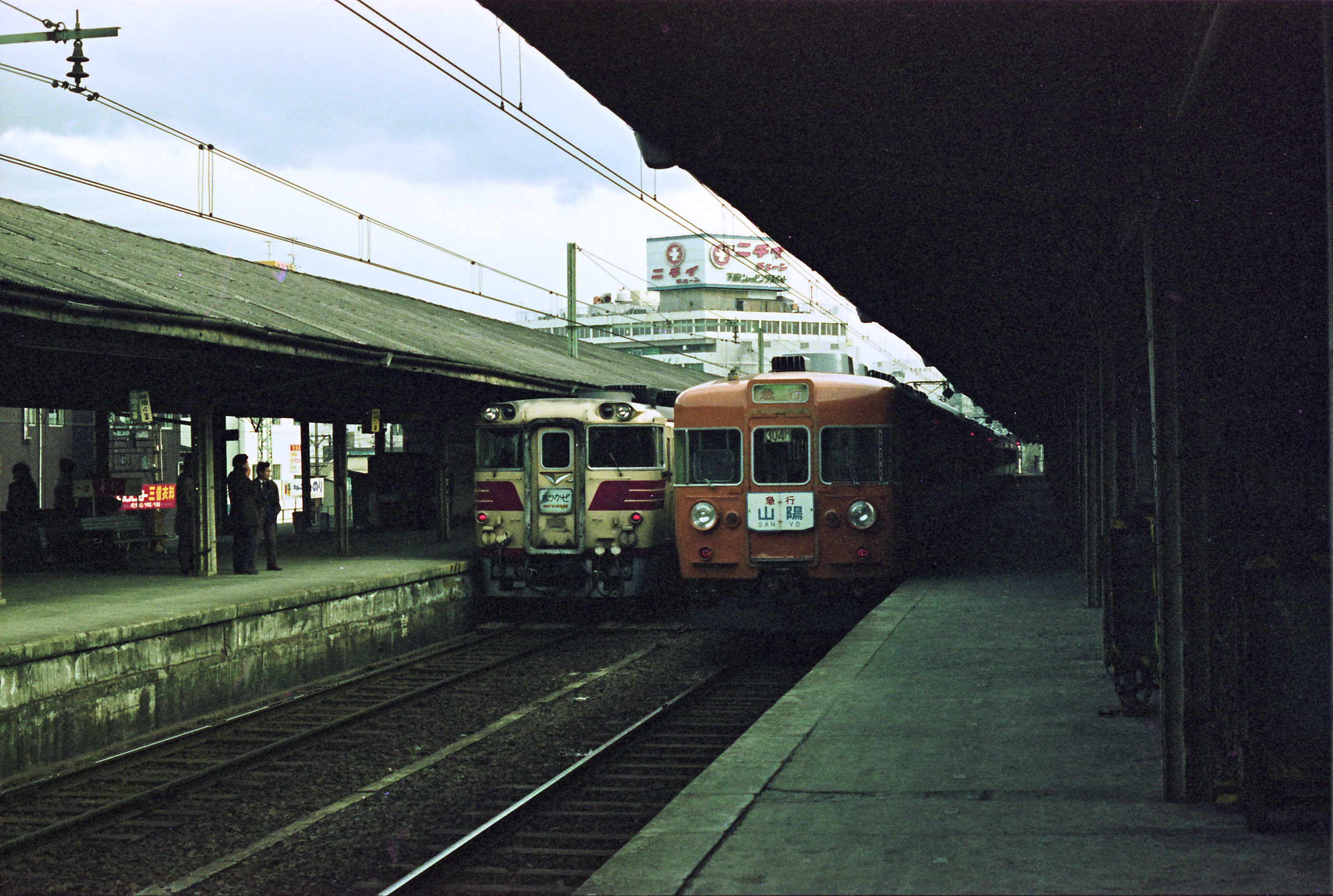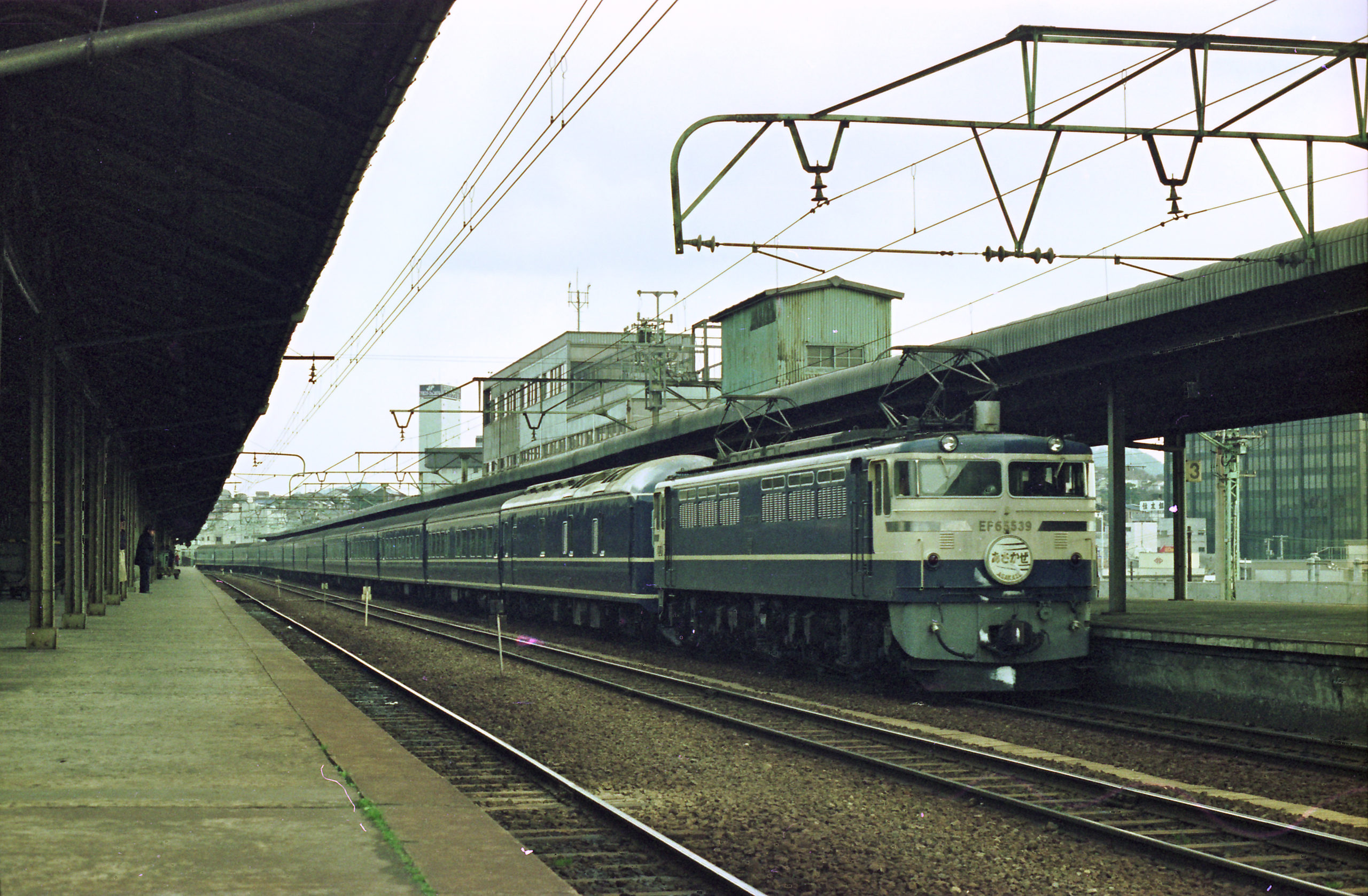 芦屋で撮影という行為に物足りなさを感じたのか在来線の列車に乗ることを突然思い立ち、その週の土曜の夜行で下関に行き翌日帰って来ることにしました。写真の前後の関係から考えると、大阪発23時32分の「つくし2号」のB寝台を利用したようです。下関滞在5時間でとんぼ返りとなりましたが、帰りは「なは」のグリーン車を奮発、食堂車も利用して瀬戸内の海を眺めながら7時間余りの列車の旅を満喫したのを覚えています。