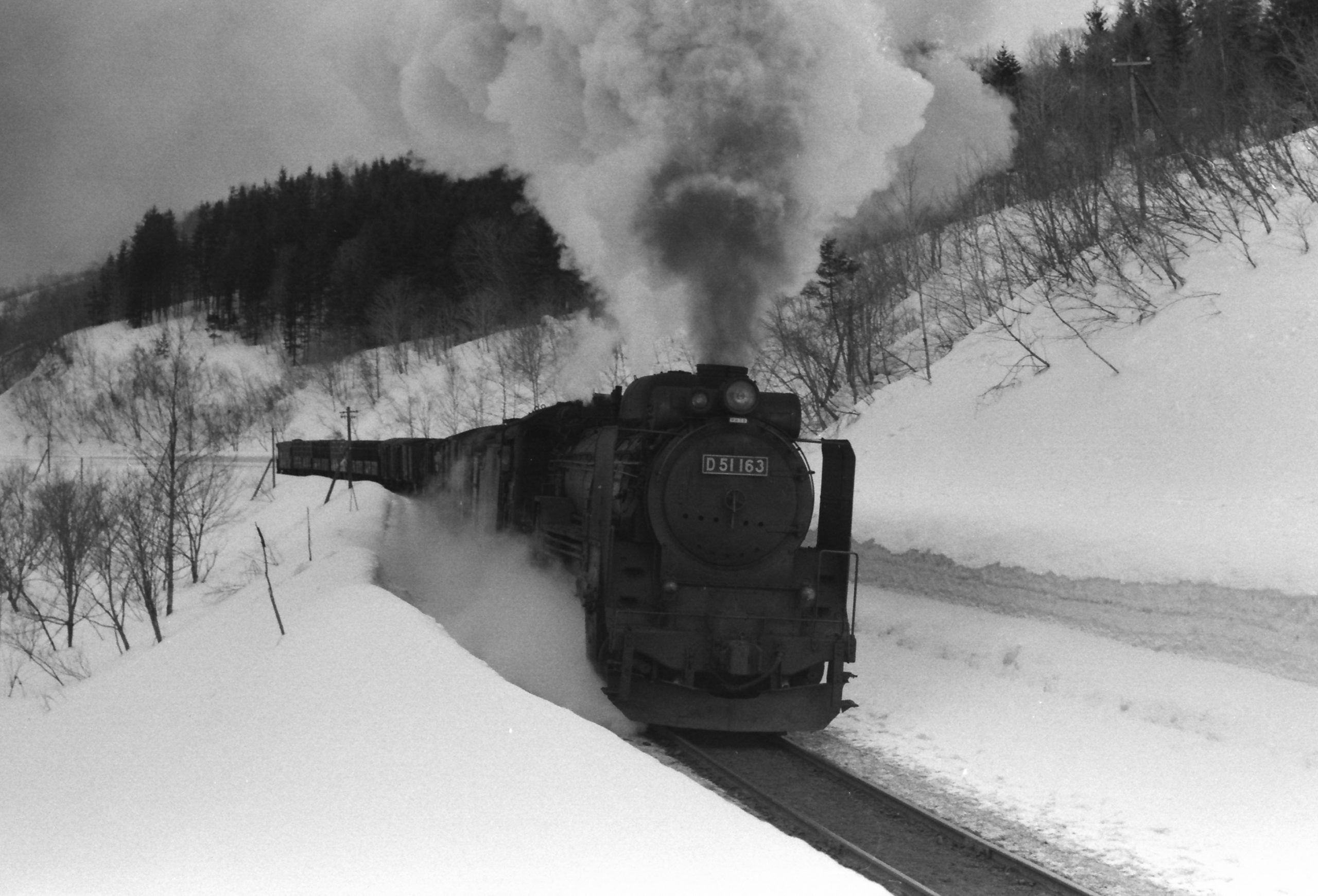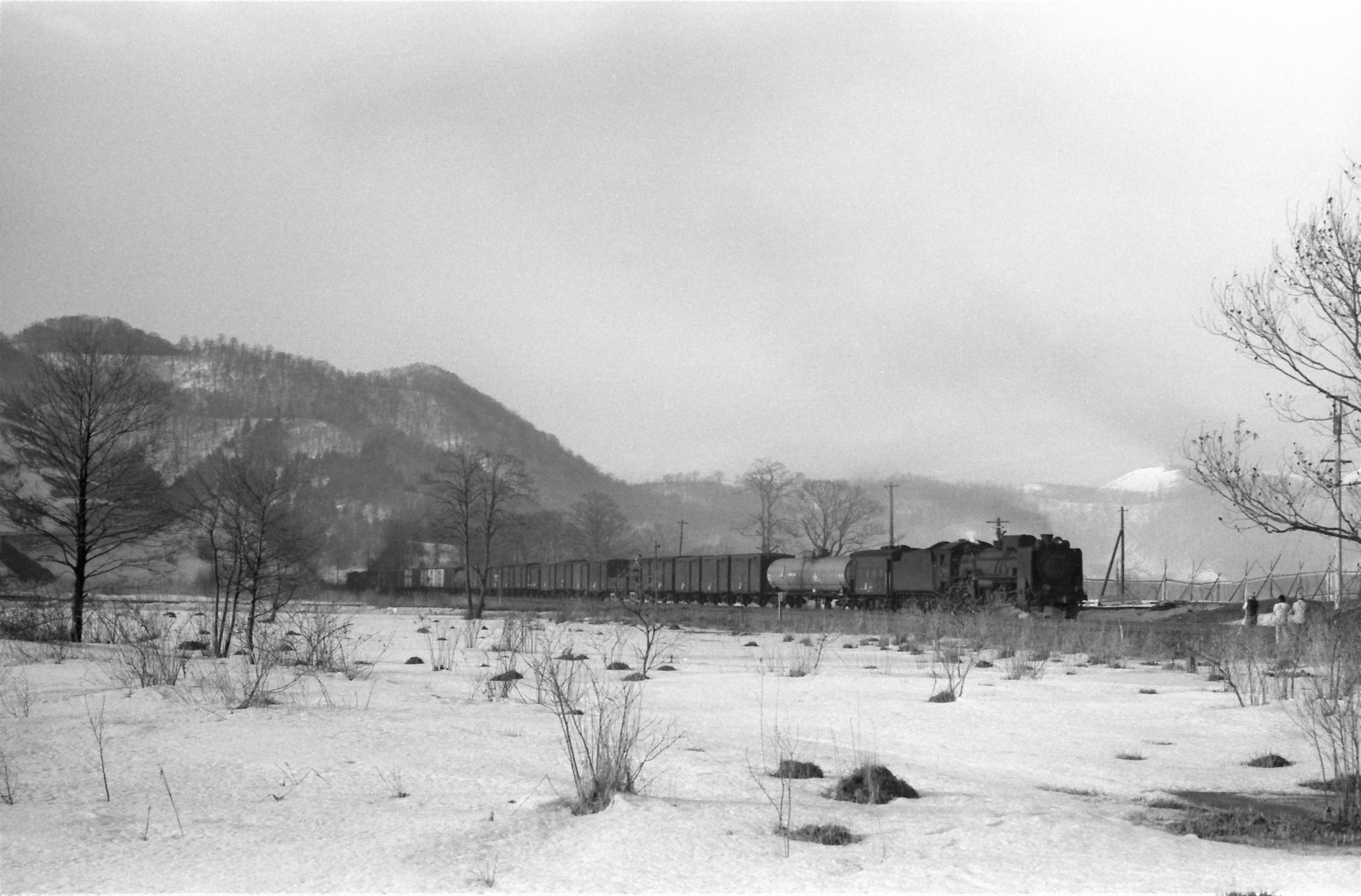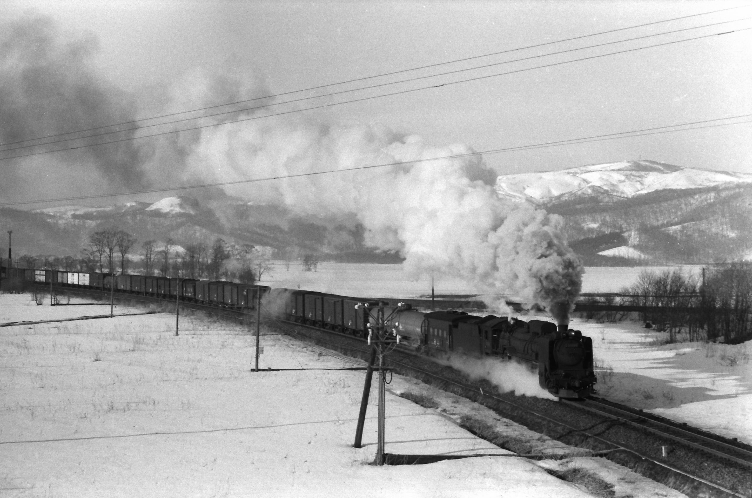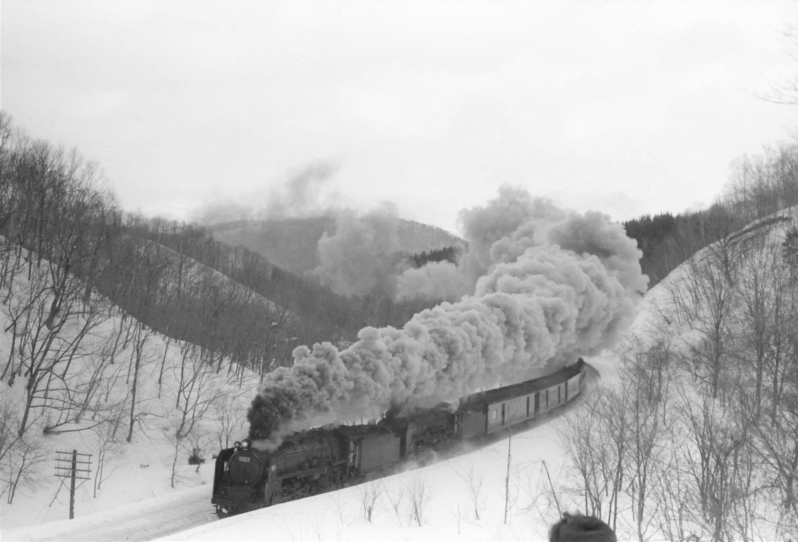 大沼付近で撮影した後、長万部から山線に向かった。初めて目にしたC62牽引の急行列車の迫力たるやすさまじいもので、今梅小路で保存され時々運転される姿からは想像できないものである。元来自分は電車ファンだけれど、この時ばかりは大袈裟に言えば血が沸き立つのを感じた次第である。