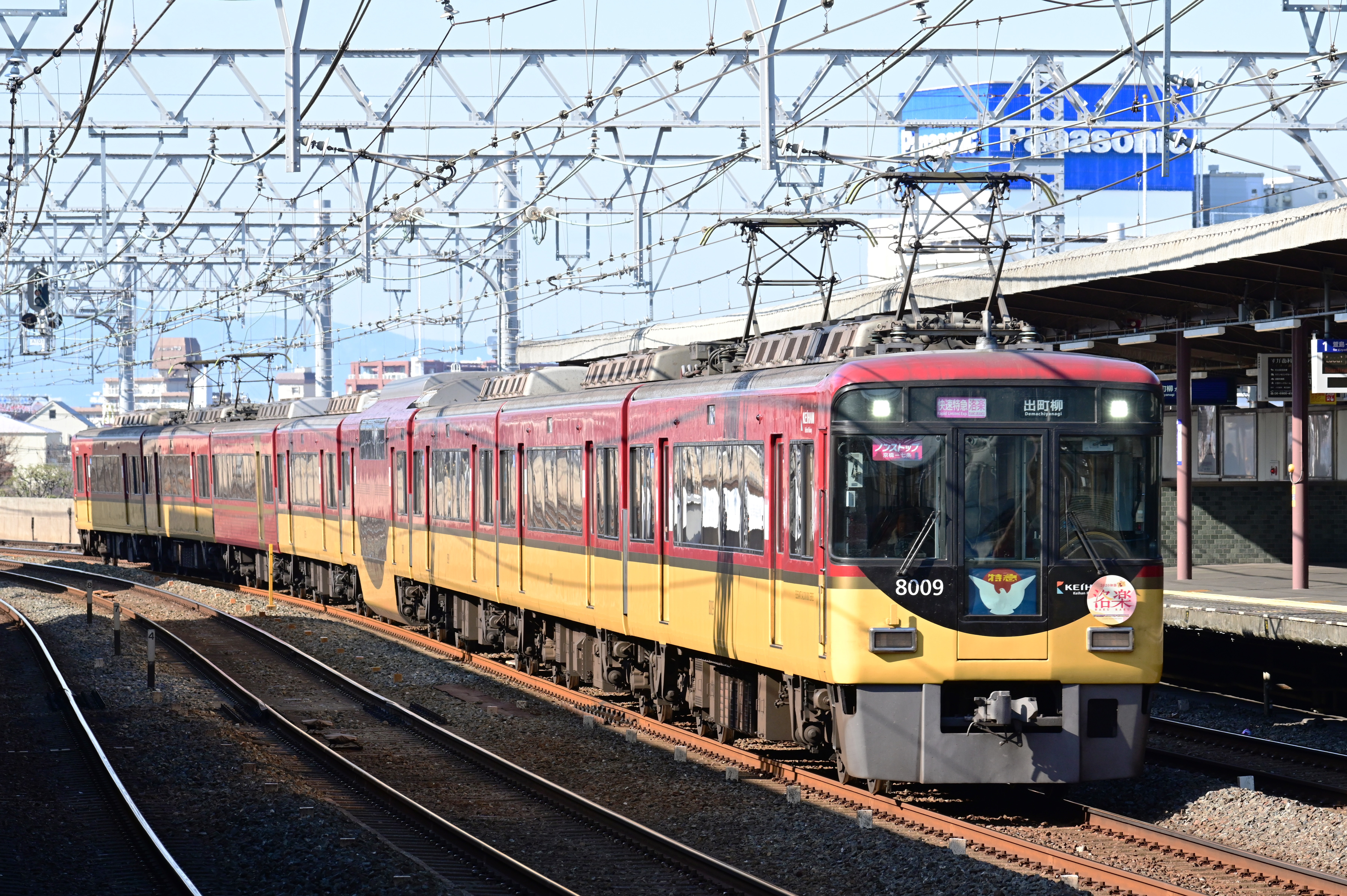 京阪の「初詣洛楽」 京阪京阪3001×8の洛楽 2020.01.09 投稿内容: 今年初の上り「洛楽」 追加投稿画像: キャプション: 3001の副標 キャプション: 8007の副標 キャプション: 3003×8による「洛楽」 キャプション: 8009×8による「洛楽」 コメント