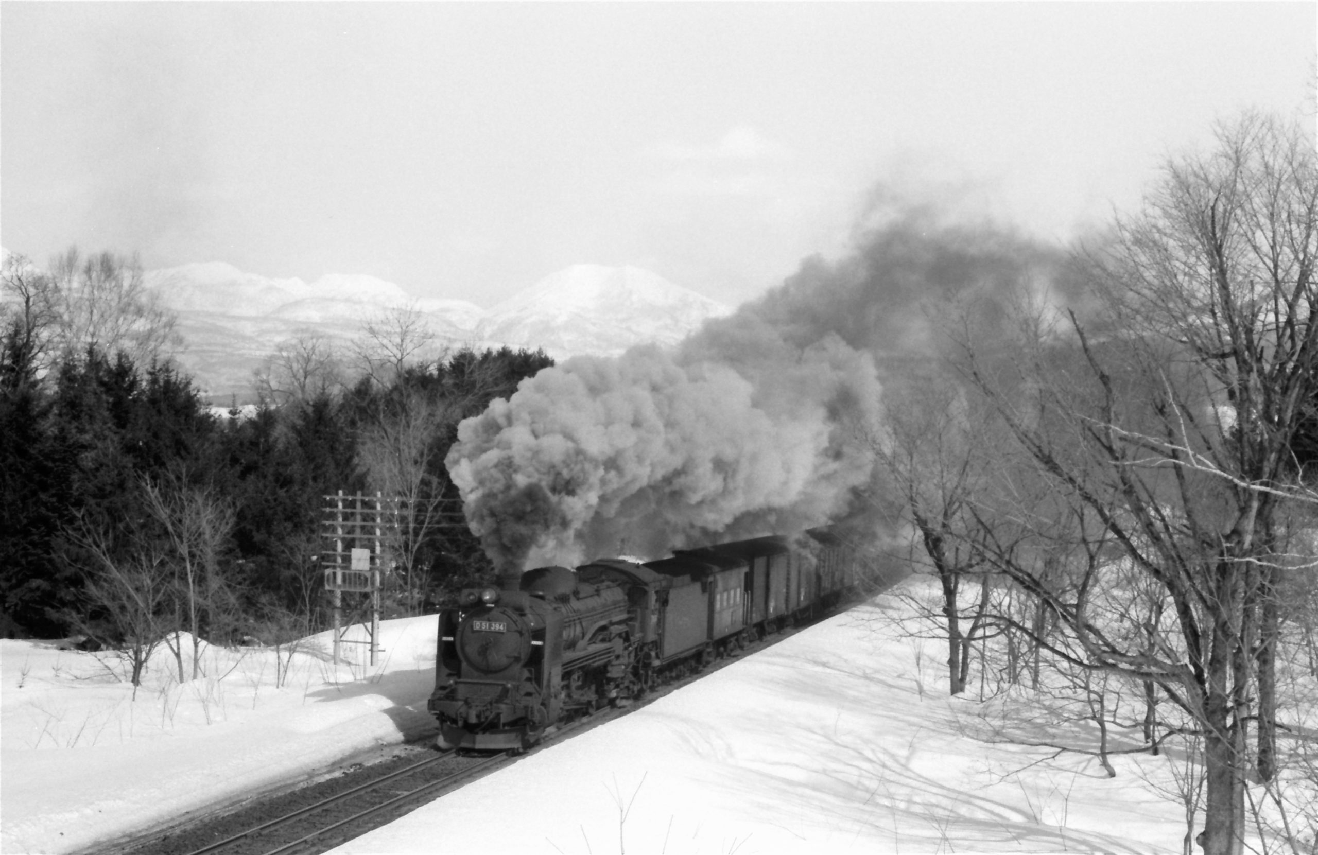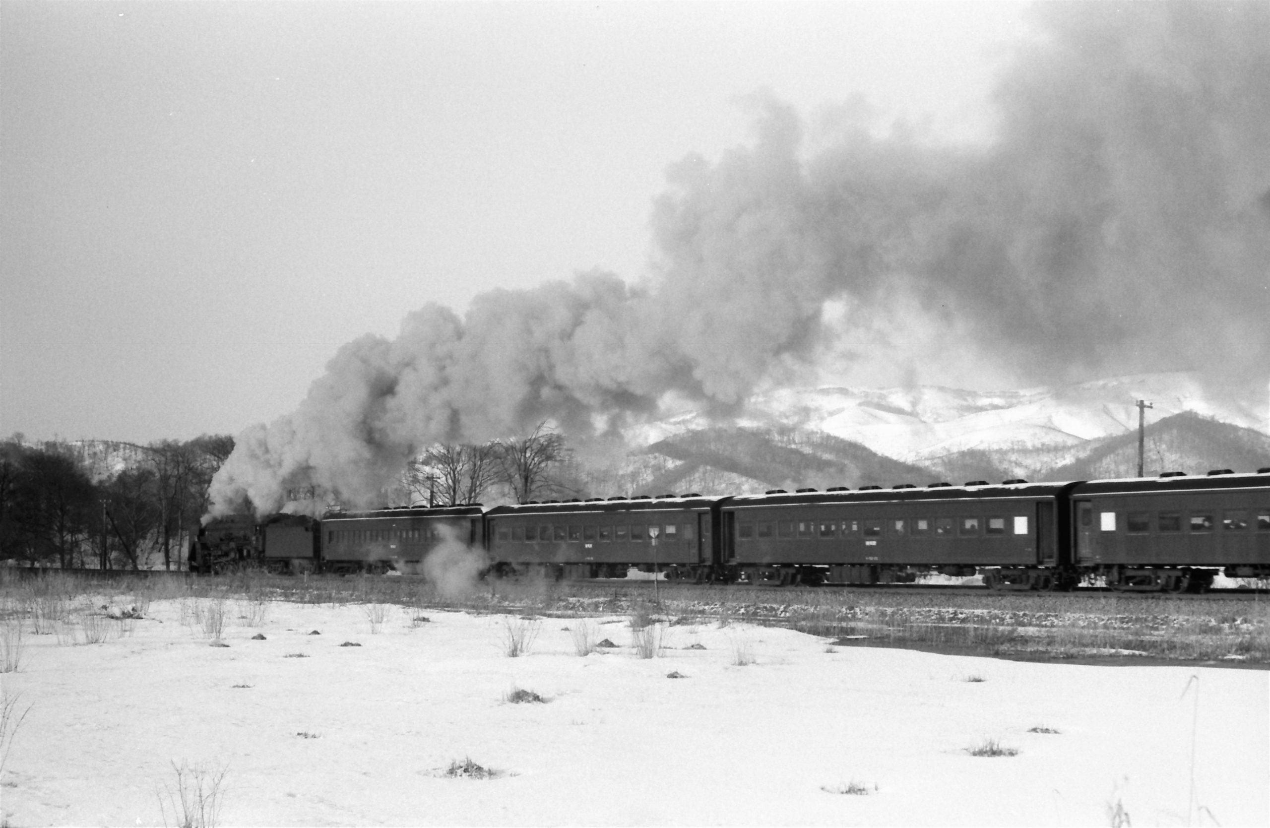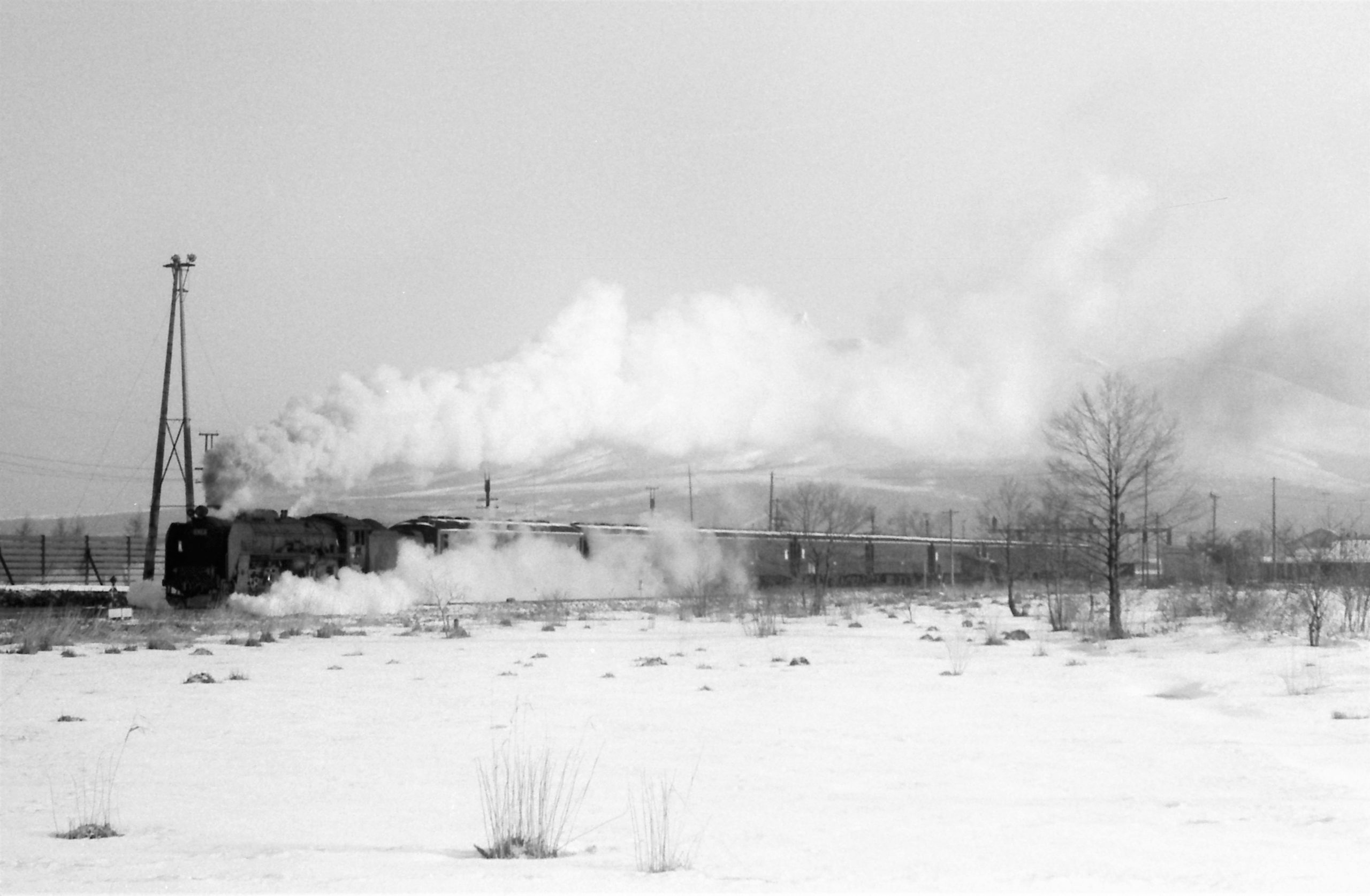 今回の投稿のためサムネイル画像を見ていると、前回投稿分と同じような写真が並んでいる。変だなと思いながら撮影メモを見ると「目名ー蘭越間」とあった。この時の合宿の目玉は函館本線のC62重連だったわけで、同じ列車を二日にわたって撮影したわけである。撮影場所が倶知安寄りになったせいで、「ニセコ」の前に1194レのコマがあった。