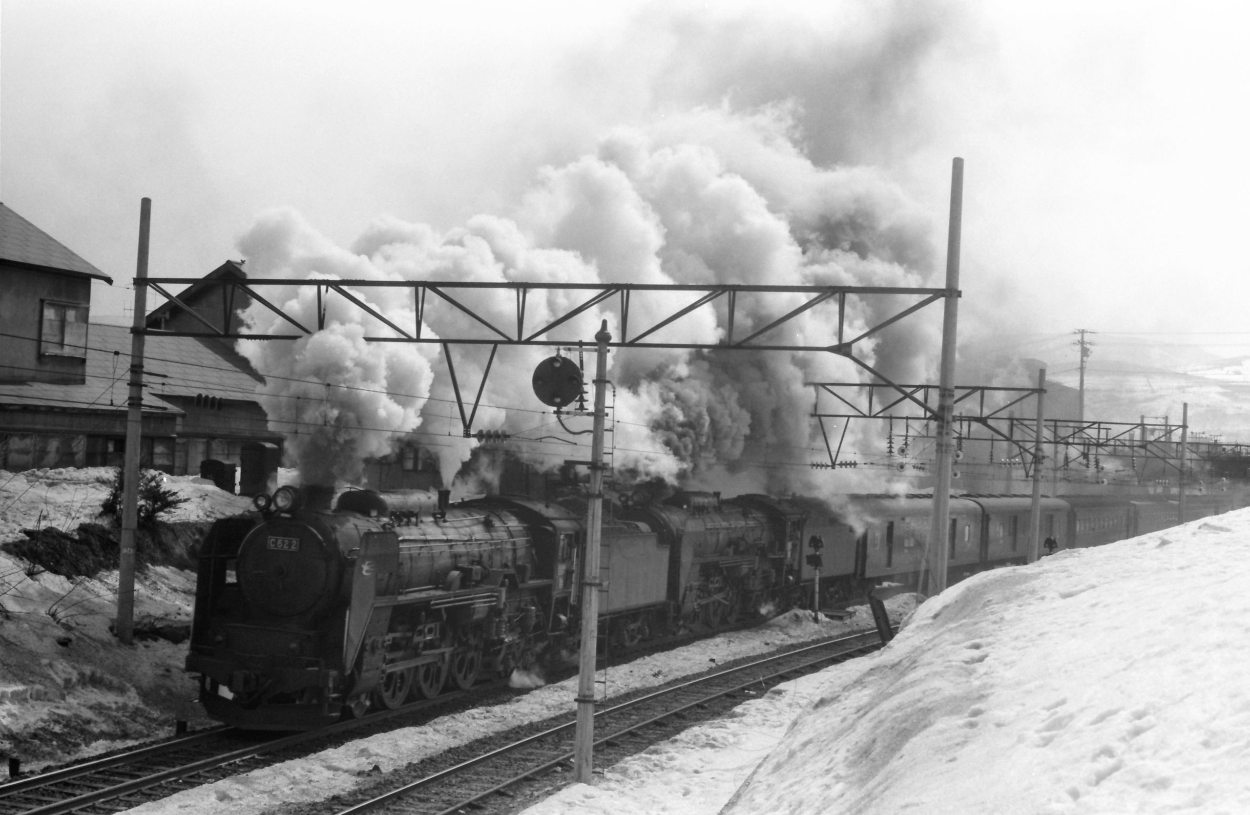 昭和46年3月 我が青春の北海道合宿記 7 鉄道旅行特急列車退避のため黄金駅停車中の229レ 2022.06.19 投稿内容: 礼文華での撮影も終え普通229レに乗車、道都札幌を目指す 追加投稿画像: タイトル: 先に4D 「北斗2号」が駆け抜けてゆく タイトル: 続いてやって来たのは下り5D「おおぞら2号」キャプション: この写真は現像時にネガを傷つけてしまったのでトリミングしています。 タイトル: 黄金の駅から黄金色に輝く内浦の海を臨む タイトル: 15D「おおとり」は網走行き タイトル: 翌朝合宿解散後札幌駅で「北海」と対面 S46.3.20 タイトル: 札幌が地上駅だったころ タイトル: 小樽で待機するC62 タイトル: 10時51分C62が重連で牽く「ニセコ1号」が小樽を相変わらずの迫力で出発 コメント 名前:南本利治 : 投稿日:2022/06/19(日) 21:16:22 ID:AwNjAzNDQ 北海道合宿も最終段階。礼文発12時56分の229列車に乗車、道都札幌を目指す。途中、黄金駅で2本の特急列車を退避、1本と行違う。ダイヤでは先に「おおぞら」が通過するはずだが、少し遅れていたのか「北斗」が先にやって来た。この後ネガには東室蘭と思しき駅で撮ったC57のコマがあるが、逆光の酷い写真なので掲載は遠慮させていただいた。なお、229列車は苫小牧から室蘭本線を岩見沢方面に抜けて行くので、我々は多分東室蘭から急行「ちとせ5号」に乗り換えて札幌に向かったものと思われる。東室蘭から札幌方面へ行く次の列車は1231D小樽行きで、それだと札幌着が19時26分と大分遅くなるからである。ただし、例によって記憶はないから本当のところはわからない。 返信 名前:塚本 勝美 : 投稿日:2022/06/20(月) 17:41:33 ID:AyOTkzNDQ このシリーズを機に、自分自身のネガを見ると、南本さんほど撮っていないことが分かり、後悔しています。ですから、このシリーズは、小生の足らなかった写真を補うのに役に立ちました。ありがとうございます。 小生はこの合宿解散後、北海道内を転々とする予定だったので、前半の部分で撮影コマ数をセーブして、あまりフィルムを使わないようにして、それでも最低限は撮ろうと思っていたようです。今のようなデジタルカメラなら、思い存分撮影していたことでしょうね。隔世の感がします。 返信