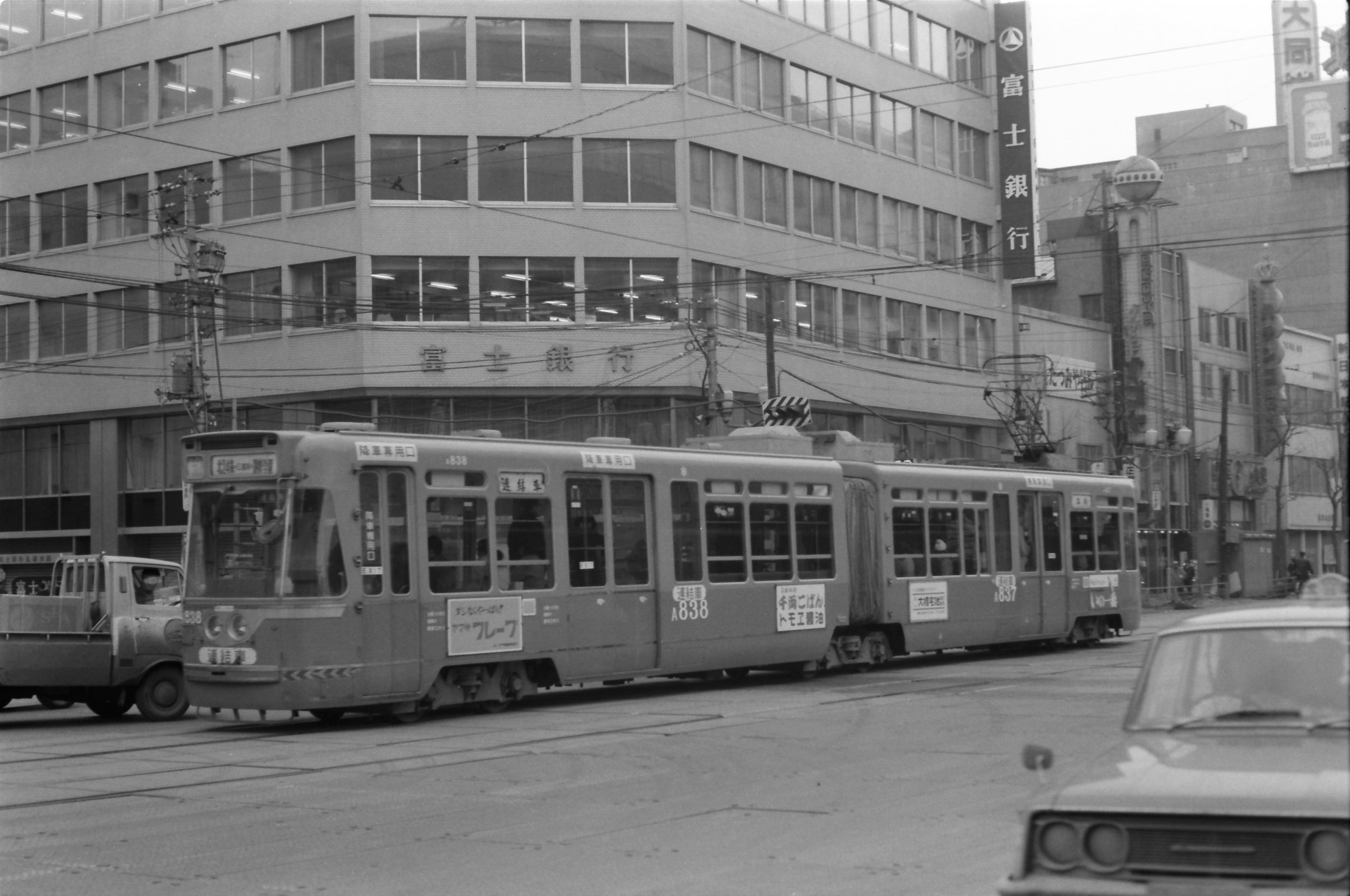 昭和46年3月 我が青春の北海道合宿記 8 鉄道旅行北海道大学古河記念講堂 S46.3.20 2022.06.23 投稿内容: 小樽で「ニセコ」撮影後札幌に戻り市内を少し歩くことに。その後夜行列車で函館へ 追加投稿画像: タイトル: 札幌時計台 タイトル: 大通公園から見るテレビ塔 タイトル: 札幌市交通局230形 タイトル: 札幌市交通局250形 タイトル: 600形 タイトル: 連接構造のA830形キャプション: 当時としては斬新なスタイル タイトル: 北大構内のポプラ並木 タイトル: 函館市交通局800形 S46.3.21 タイトル: 函館市交通局500形 タイトル: 函館市交通局710形 コメント 名前:南本利治 : 投稿日:2022/06/25(土) 20:48:07 ID:g0NDYxNjQ 当時札幌にあった国鉄職員共済の宿泊施設で合宿は終了、翌日は小樽まで足を伸ばしてC62牽引の「ニセコ」を撮影した後札幌市内を少し歩いた。ポプラ並木など郊外の雰囲気だがGoogle地図などで見てみると、駅のすぐ近くにあったことがわかる。 市電などを撮った後夜行の「すずらん6号」で札幌を後にした。当時は小樽~旭川が電化されており711系が活躍していたはずなのだが一枚も撮っていないのは残念だった。当時の記憶はないのだが「すずらん6号」は時刻表を見ると荷物車・グリーン・A寝台連結の11両編成の堂々たる客車列車で撮っといたらよかったなあと思う。自由席車が4両だったので座席を確保しておきたかったからだろうか。函館でもホームで撮影する時間はあったはずだが何故か撮影することもなく昼頃の連絡船で北海道を後にした。 返信