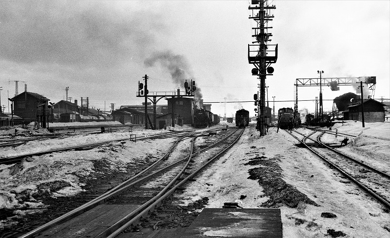 函館本線(山線)回想2 JR北海道回想1の最後、黒松内駅侵入のH100系が、倶知安に向けて走り出していくところです。 2022.11.282023.01.10 函館本線の山線区間をH100系の電動気動車に乗りながら、今を眺め、過去の思い出に浸っていました。 黒松内駅を通過し、熱郛に向けて驀進するC6244+C623重連 下り急行「ニセコ」札幌行き 昭和46年の暑い夏の日でした。 銀山駅。この駅もよく利用した駅です。然別方へ下ったり、小沢方のトンネルの手前まで行ったりしました。 銀山駅から然別方へ線路沿に下っていくと、このカーブに着きます。手前の山腹に陣取ってC62の重連を何度も撮影しました。次にその写真を2枚掲げます。 春先の頃は天候に恵まれることもあり、納得できる写真が撮れました。 夏のワンシーンですが、C622の煙が見えずがっかりしたことを思い出します。やはり夏は煙が出ないですね。 銀山駅から小沢方のトンネルまで歩いて来て、雪山に登り、俯瞰で撮りました。撮影場所の横では、地元の子供たちがスキーを楽しんでいたので、小生も汽車が来るまで、雪と戯れていました。 今の倶知安駅構内です。新幹線ホームを建設するために広いスペースが取られています。駅舎は変わりませんが、ホームは島式1面のホームで、1番線は行き止まりです。2番線が本線ホームになります。ずいぶん小さくなったものです。 胆振線の2つめ96が走り回り、にぎやかだった頃の倶知安駅。上の写真と同じ踏切から撮影しています。ずいぶん違うものです。時の流れでしょうね。 「駅の宿 ひらふ」で有名になった比羅夫駅です。列車から降りて17歩で宿に到着という日本で一番列車に近い宿です。昭和45年頃の写真を次に掲げますが、列車交換ができたホーム2面の駅でした。 下り列車と交換です。しっかりとした下りのホームがありました。 世界的に有名になった「ニセコ」です。倶知安とともに外国の方が多いとか聞きます。この日もここで降りられる客が沢山おられました。倶知安からニセコまでは、車内が混雑していました。「ニセコ」駅の駅名板は、以前、次のようでした。 いまでは、「ニセコ」とカタカナですが、以前は「にせこ」とひらがなでした。特急「北海」が通過していきました。今では特急が走っていません。(臨時でニセコがはしるときがありますが・・・。)時の流れを感じます。 ここに「蕨岱」駅がありました。少し駅の面影が残っていますが、駅が無くなるというのは寂しいです。この駅も、二股の方で撮影するためによく利用した駅です。 「蕨岱」駅はこんな駅でした。駅員もおられました。整備された美しい駅だったのにどうして・・・。周りの民家がなくなったからでしょね。 蕨岱駅から国道沿いに歩いて、正面に見える国道の斜面に着き、陣取りました。このカーブを中心に、下りのC62重連急行「ニセコ」を何度も撮りました。 国道の斜面に陣取り、C62重連 急行「ニセコ」を撮影しました。撮影後は、しばらく満足感に浸っていたことを覚えています。 長万部に到着です。線路が交差したり、引っ付いたり、離れたりしていますが、昔ほど多くはありません。昔の構内写真は次です。 昭和46年3月の長万部駅構内です。左に跨線橋やホームが見えます。それは今短くなりましたが、あまり変わりません。大きく変わったのが、駅の山側です。ここに新幹線ホームができるのでしょうか。 長万部で乗車してきたH100系とお別れです。小樽からの函館本線山線の旅を思い出とともに終えました。 コメント 名前:塚本 勝美 : 投稿日:2022/11/29(火) 11:34:02 ID:Q4MzQ1NTI 回想2は、20枚近くの写真をアップすることになりました。採り上げた場所は、小樽からの順番ではなく、前後しています。ご容赦ください。思い出の多い函館本線を乗り通すとこんなことになりました。山線が廃線になるまでに後何回行けるか分かりませんが、頑張って行きたいと思います。 返信 名前:塚根 義通 : 投稿日:2022/11/29(火) 12:46:24 ID:Q4MzU2NDY 塚本様、とても興味深く拝見させていただきました。 いいなあ北海道。 今回は撮影旅行で行かれたのでしょうか? 返信 名前:塚本 勝美 : 投稿日:2022/11/29(火) 15:46:52 ID:Q4MzQ1NTI ありがとうございます。やはりいいですね、北海道は…。 今回は「乗り鉄」のつもりで行ったのですが、やはり「撮り鉄」になりました。「撮り鉄」としては、満足していませんがね。 JTBの方から、「北海道に行くなら、飛行機の方が速くて安いですよ」と勧められたのですが、それを断って往復とも新幹線にしました。大学卒業後は、北海道といえば飛行機利用が多かったのですが、久しぶりに鉄道を利用して行こうと「乗り鉄」計画しました。 返信