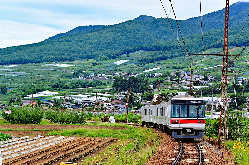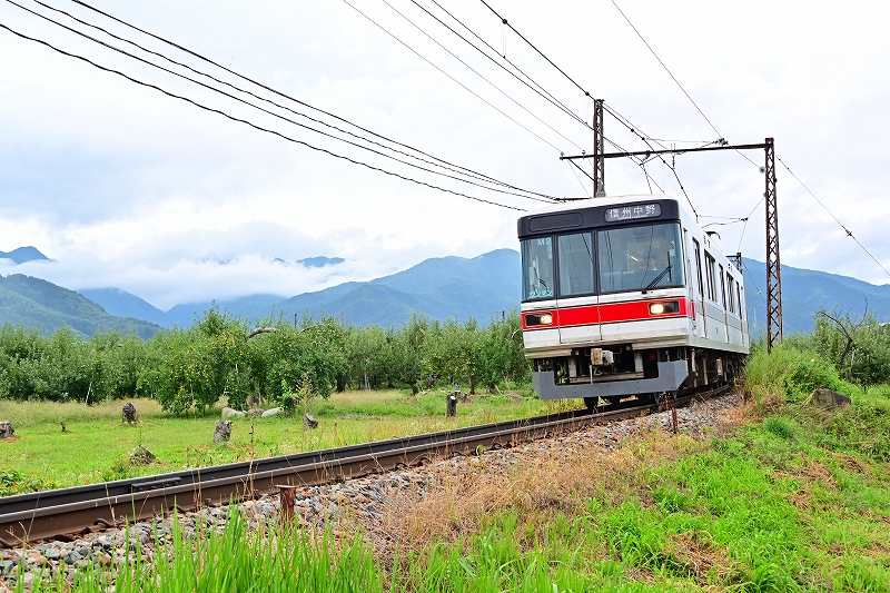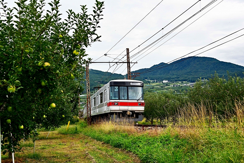 長野電鉄では、「リンゴと電車」をテーマに、撮影地を探した結果、夜間瀬駅付近にリンゴ畑が多いことを知り、その辺をウロウロしました。そして、少しは思ったような写真が撮れたのではないかと自己満足をしています。それを投稿します。