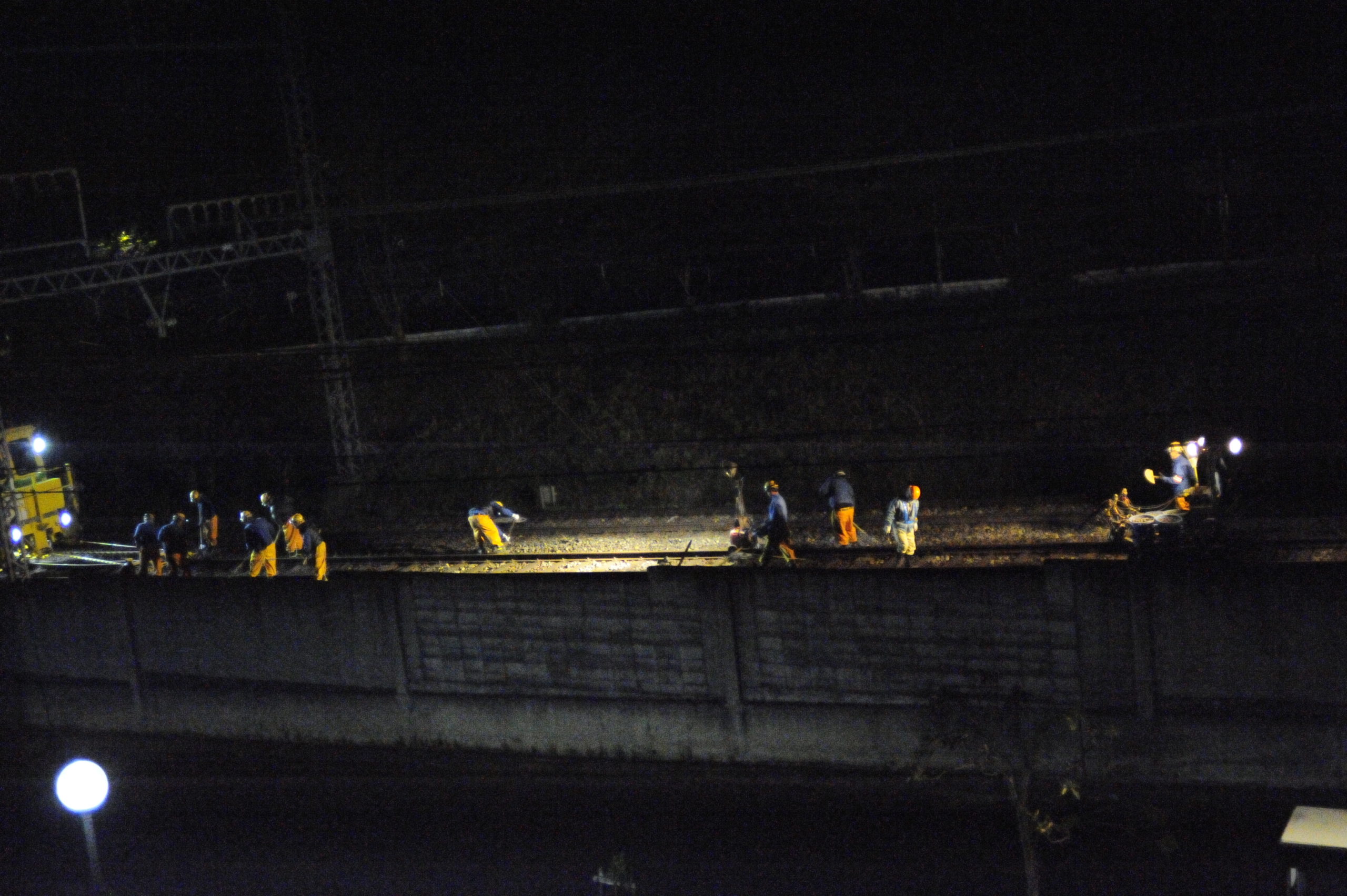 深夜の保線作業 近鉄 2020.05.09 投稿内容: 草木も眠る午前2時、トイレに微かに響く振動。ふと線路側の窓を開けてびっくり。保線作業の真っ最中。このような縁の下の方々の作業によって、定刻運行、遅延なしの列車ダイヤが守られているのです。有り難うごさいます。 追加投稿画像: タイトル: IRIE20200508-226382 コメント