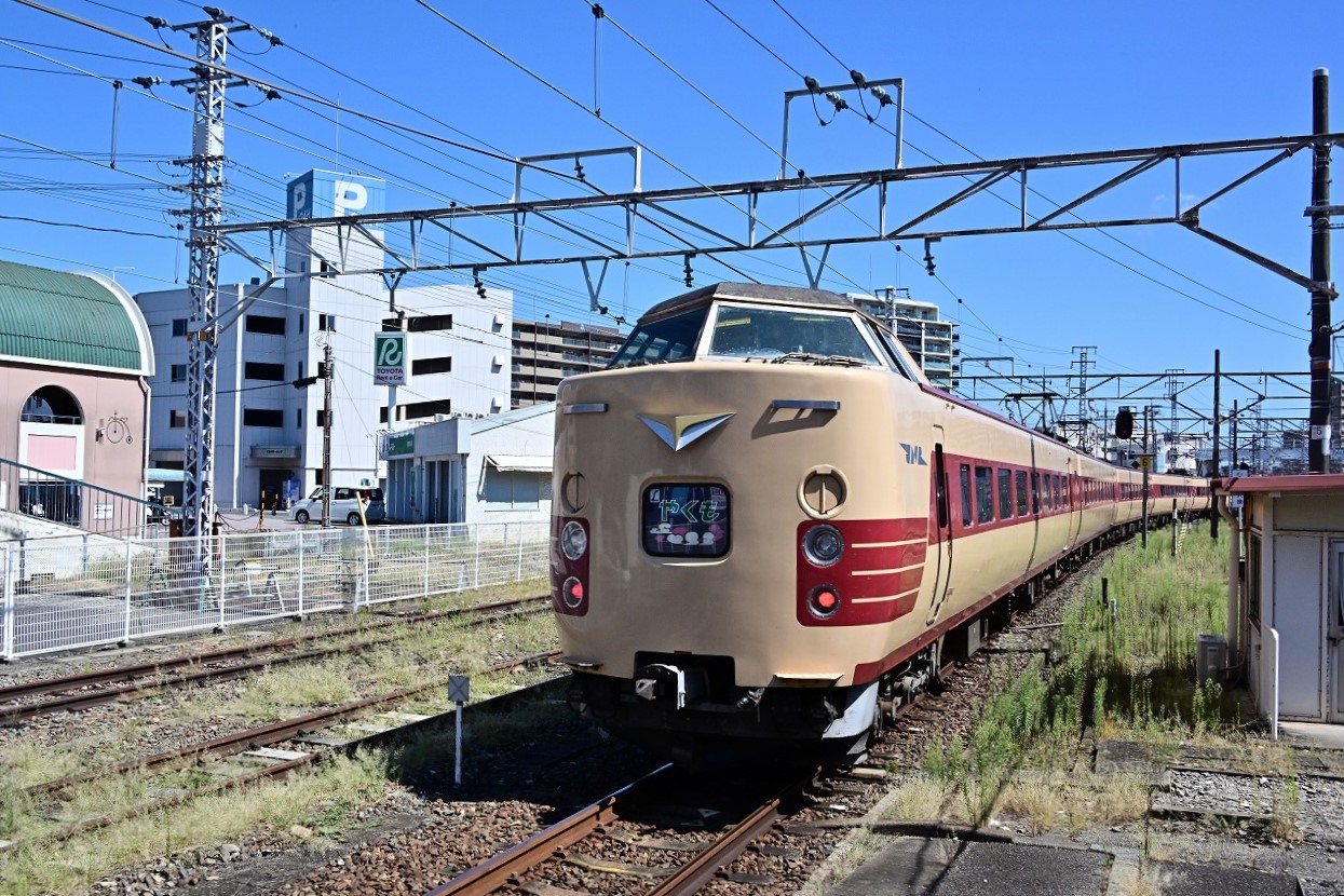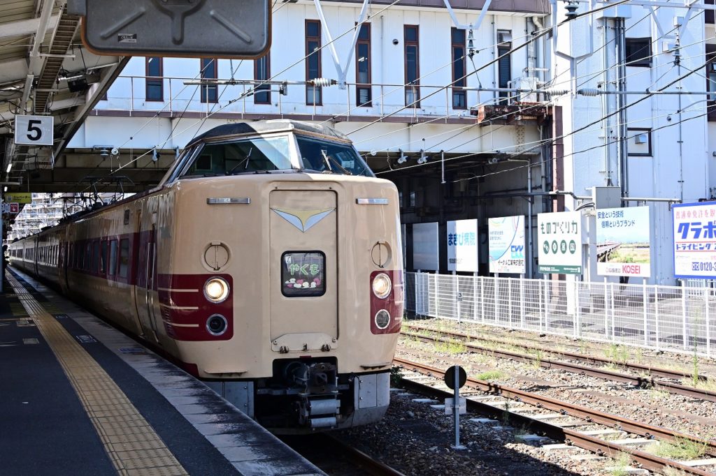 前回撮影できなかった「国鉄特急色」の381系「やくも8号」です。見慣れたこのクリーム4号と赤2号、いいなあ~。倉敷駅を岡山に向けて発車していきます。
