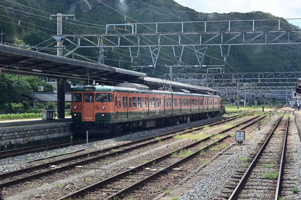 新見行きの電車を待っていると115系原色編成がやってきました。ラッキー!