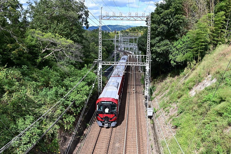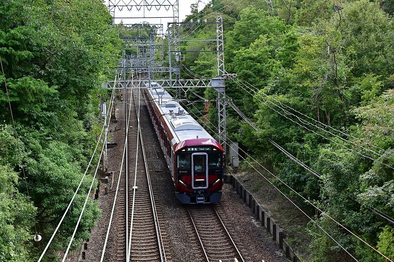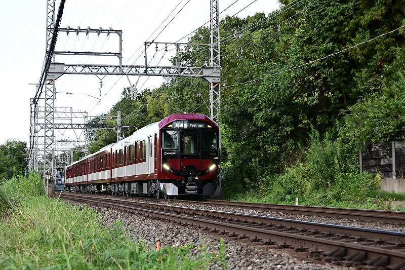 先日の連休に、近鉄の新型車8A系が、乗務員の運転訓練のために京都線に入りました。8A02編成が使われました。運転区間は、大和西大寺駅と新田辺駅間で、1日5往復しました。(連休明けの今日(24日)も入りました。)